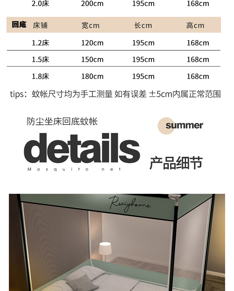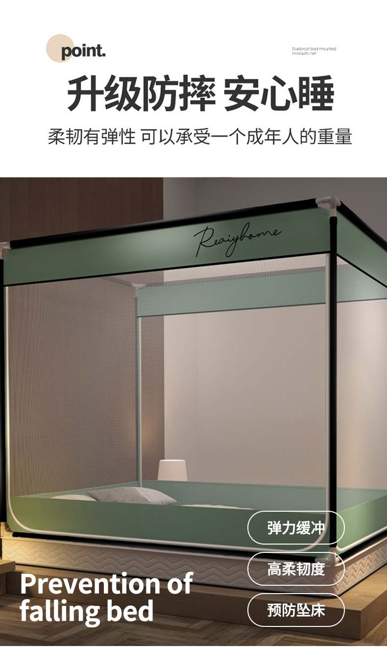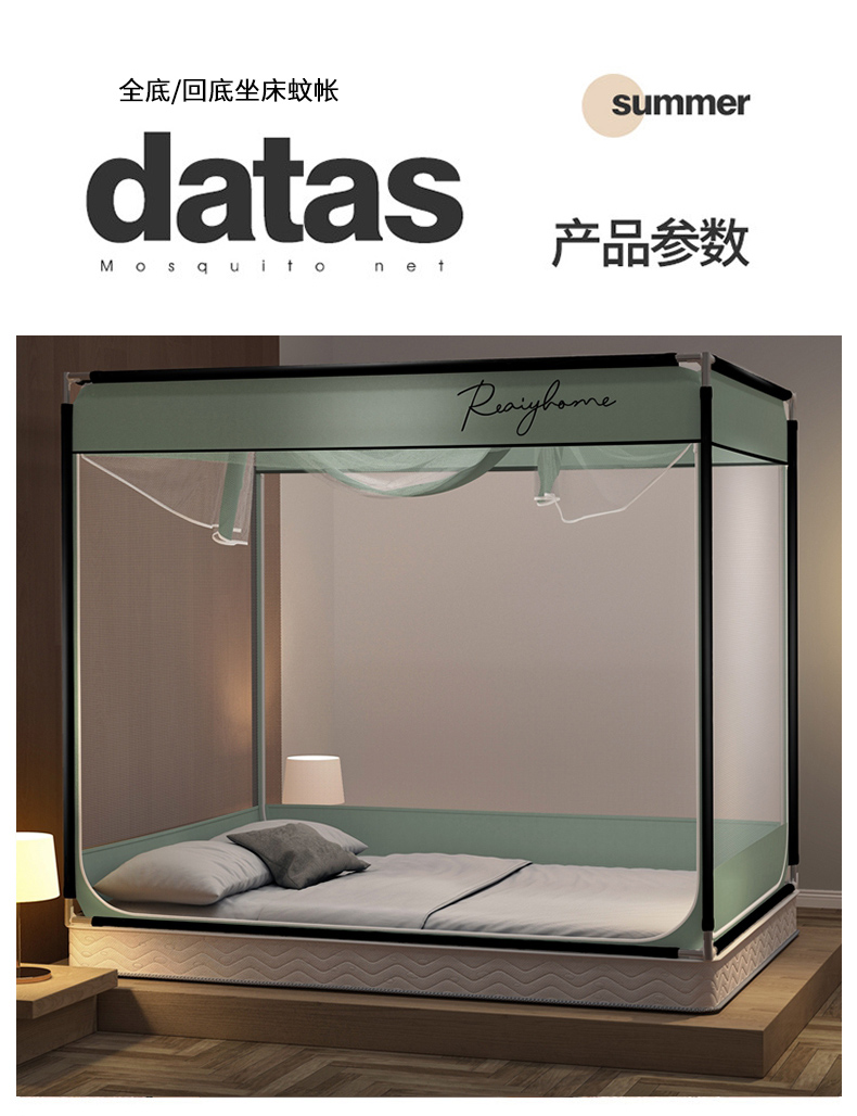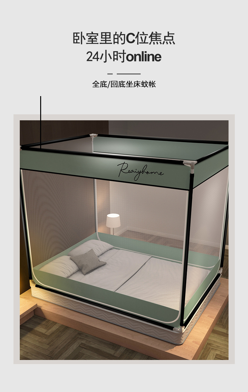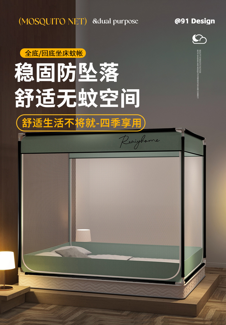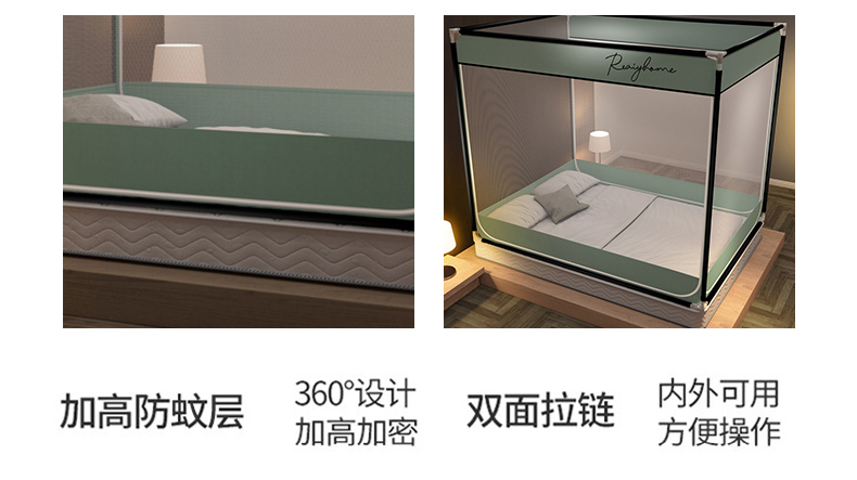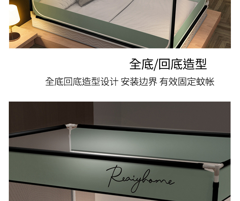 商品名称:飞轮海蚊帐 2025新款稳固防坠落回底全底坐床蚊帐Z62 白绿(全底)