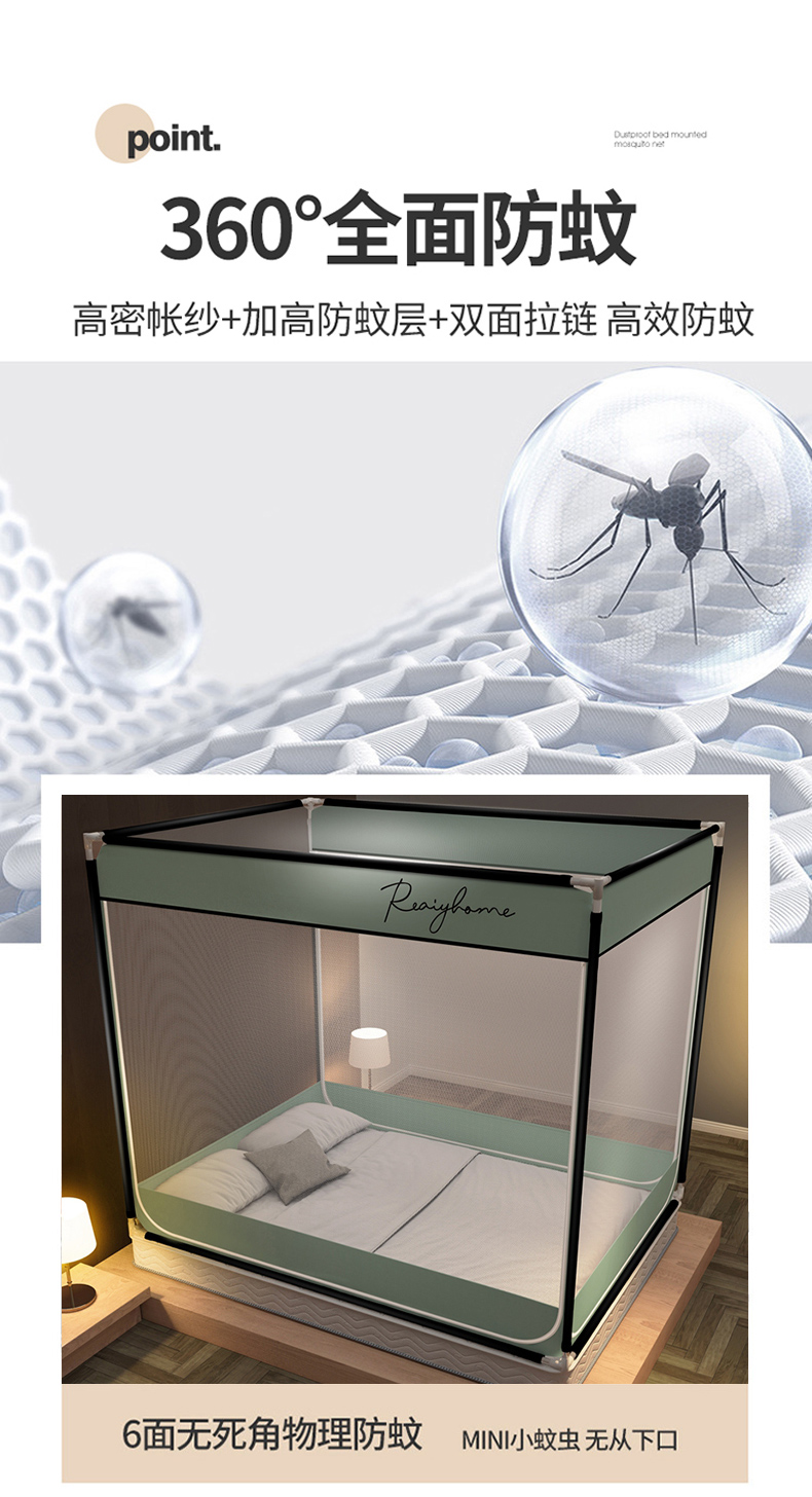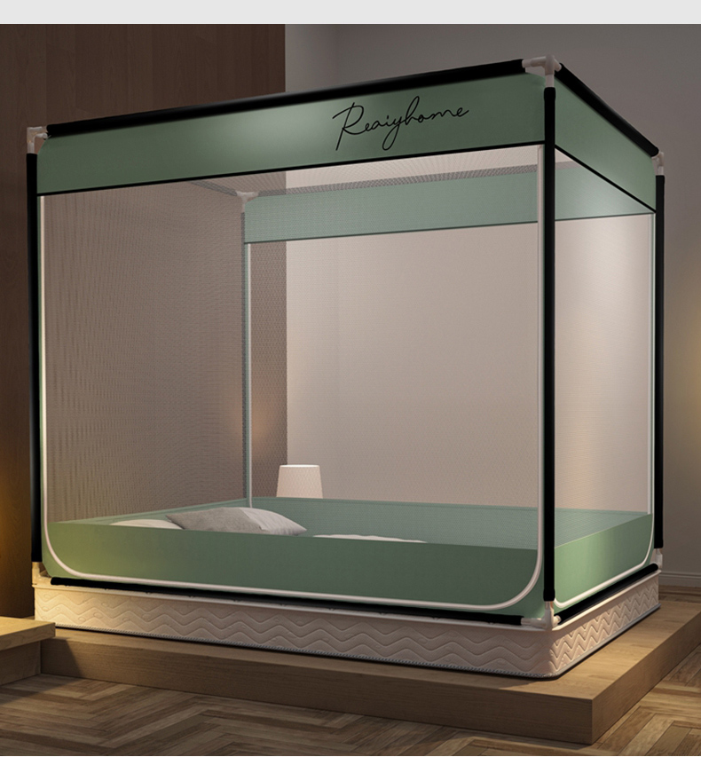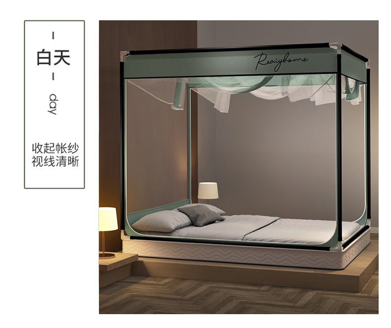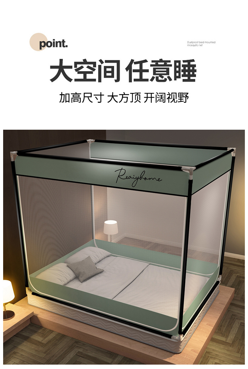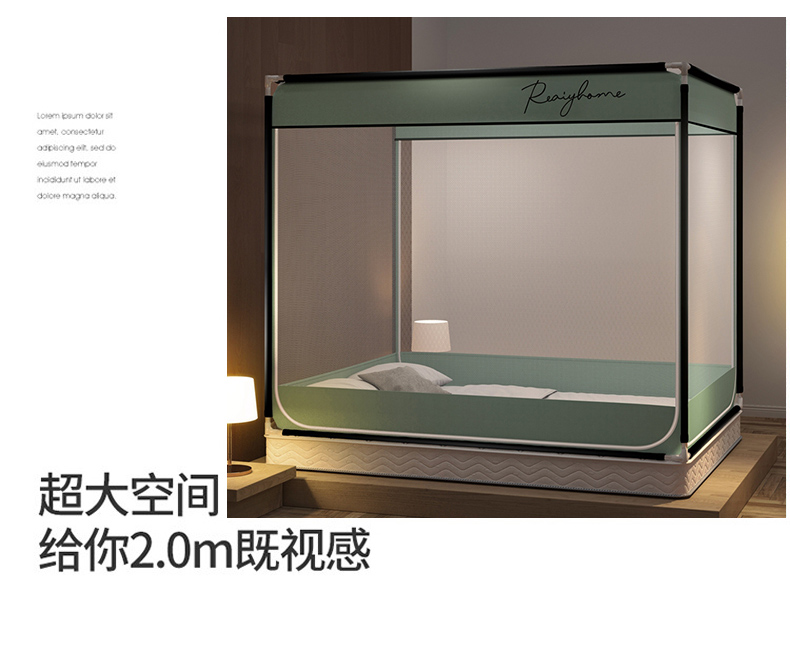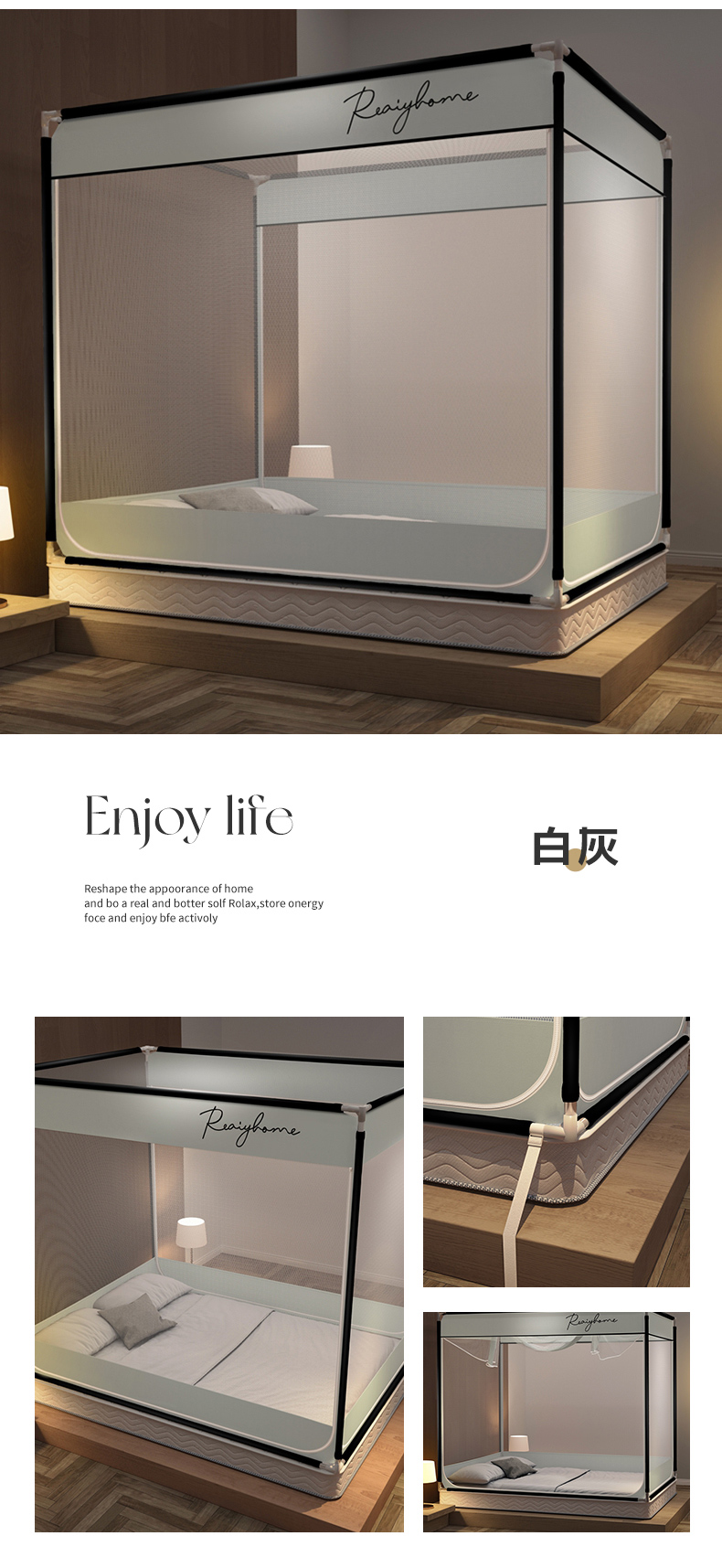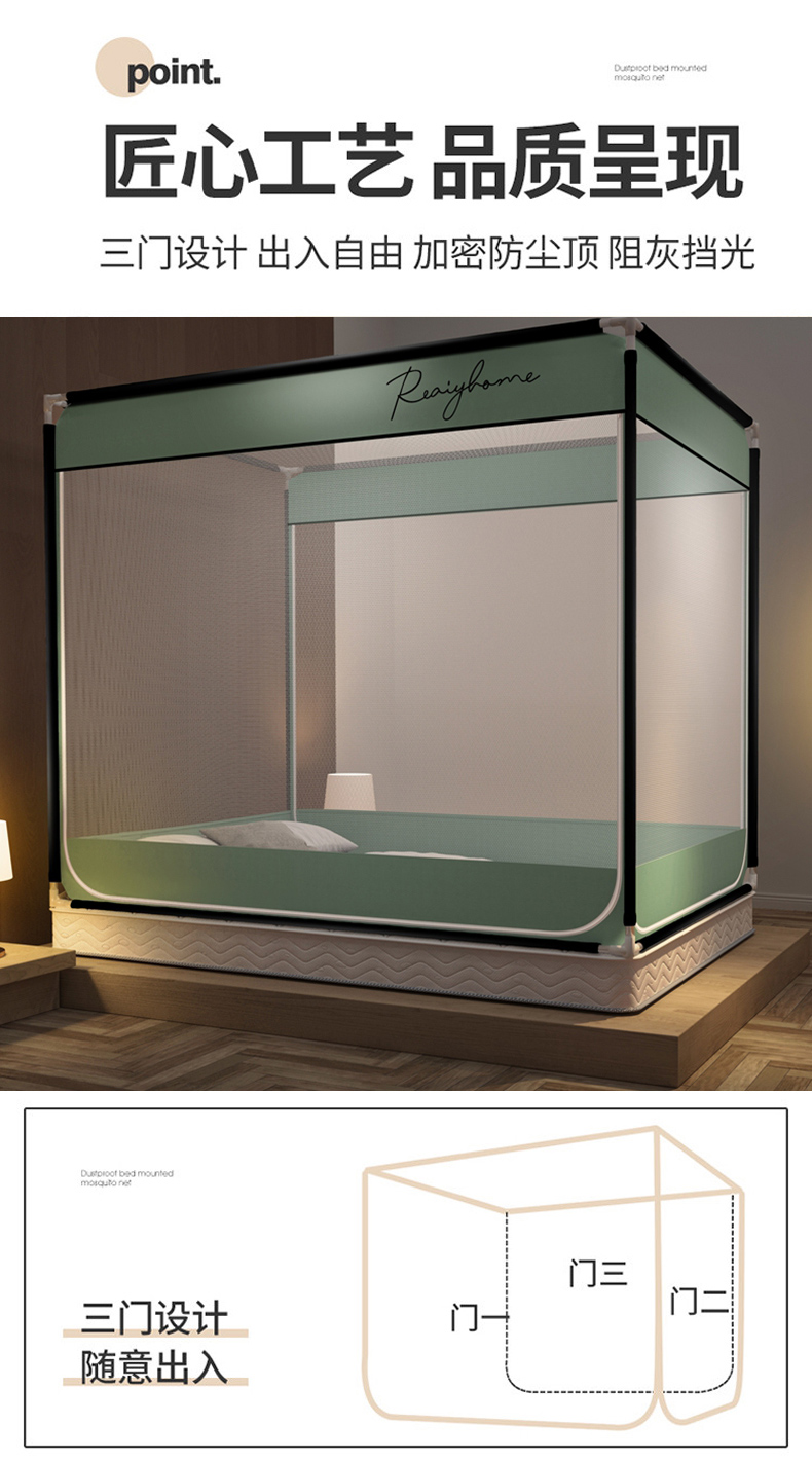 (总)飞轮海蚊帐 2023新款三开门落地遮光蚊帐-L-93,高级灰,芥末绿,奶油黄,香槟