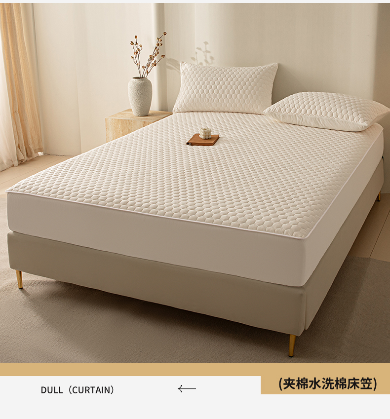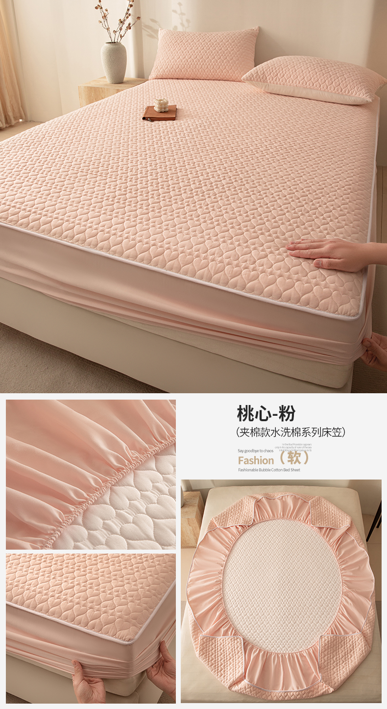优悦生活馆 2025新款亲肤水洗棉夹棉防水床笠 桃心-粉