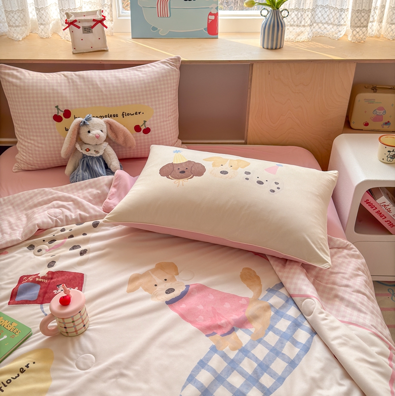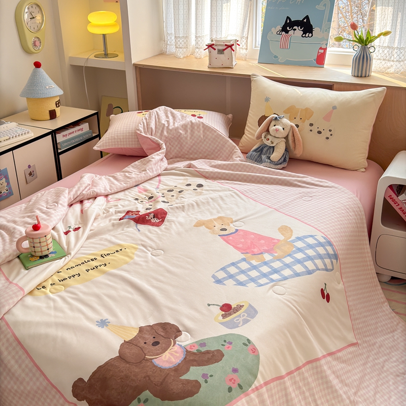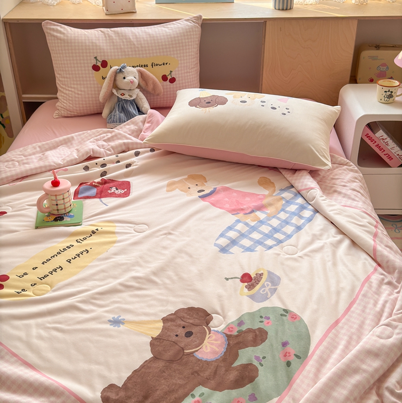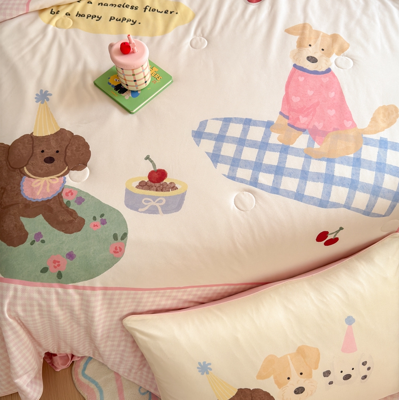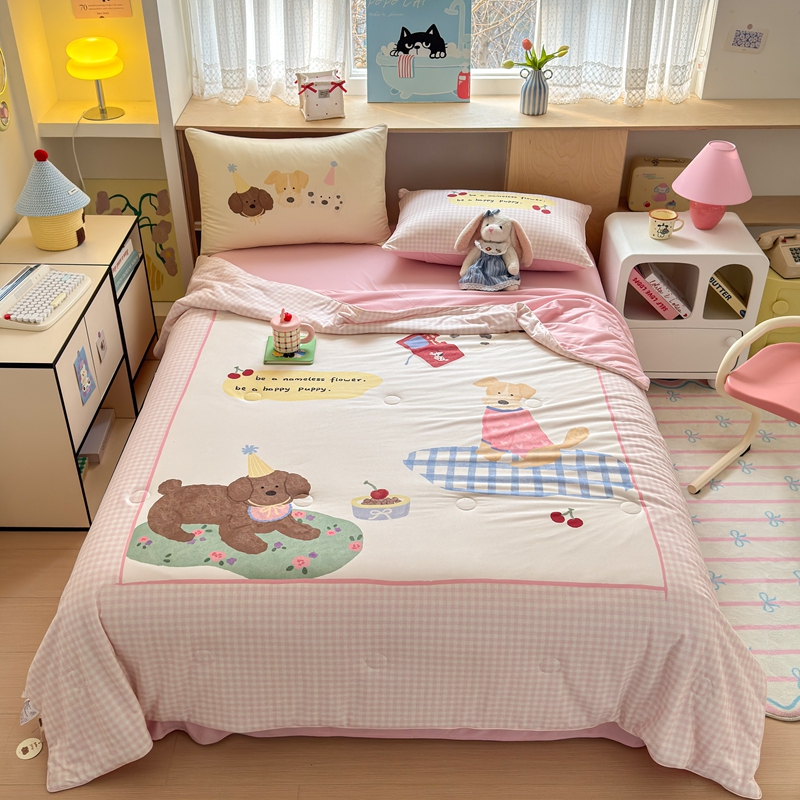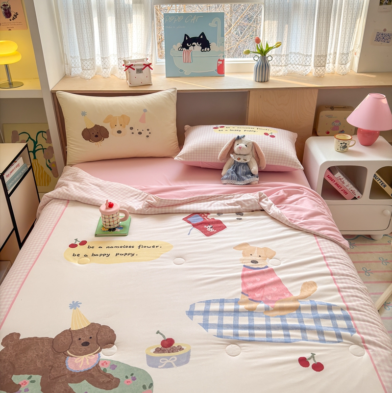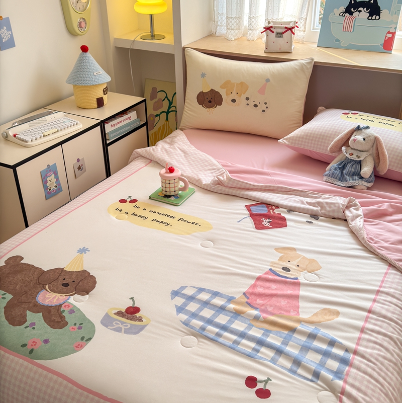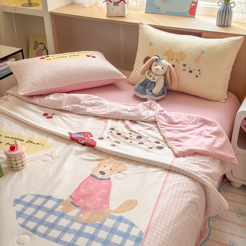 商品名称:星期八 2025新款针织棉夏被四件套 油画小狗