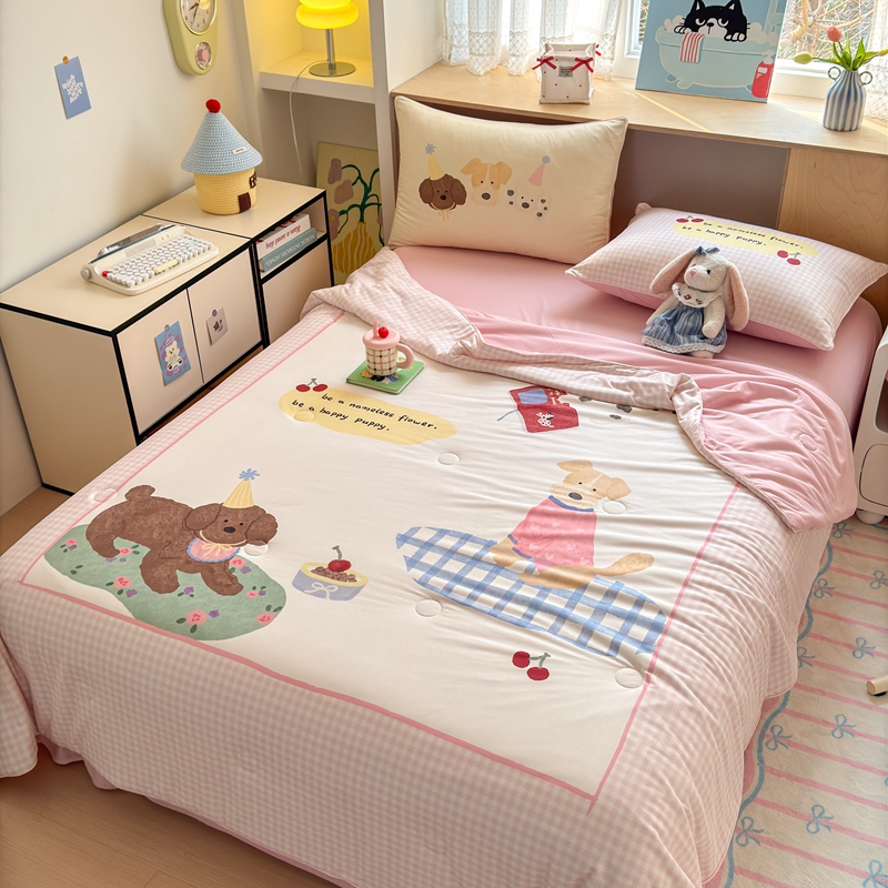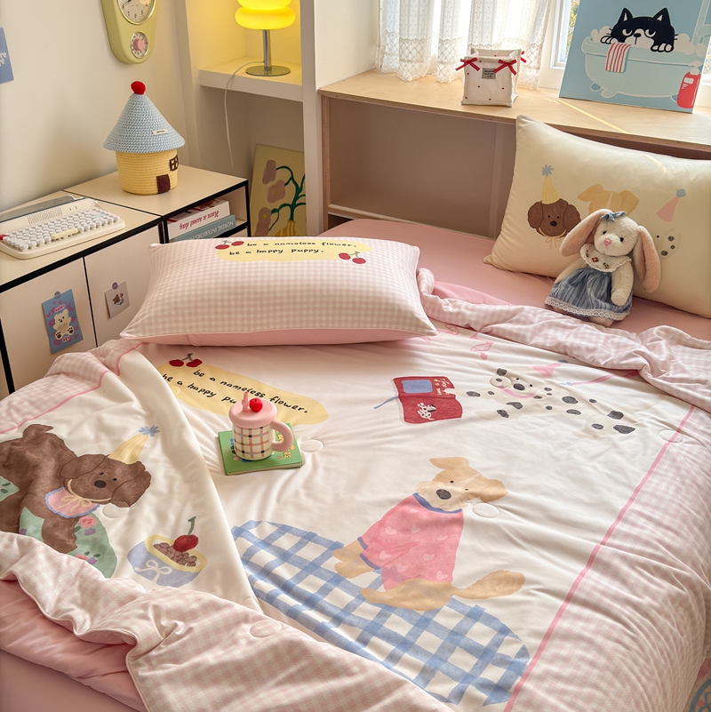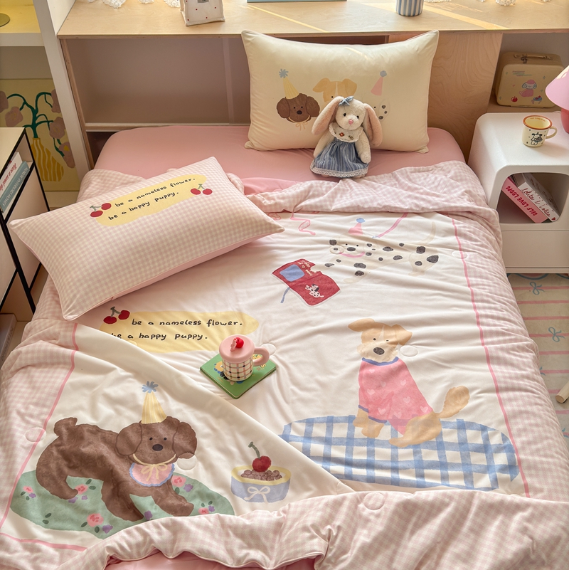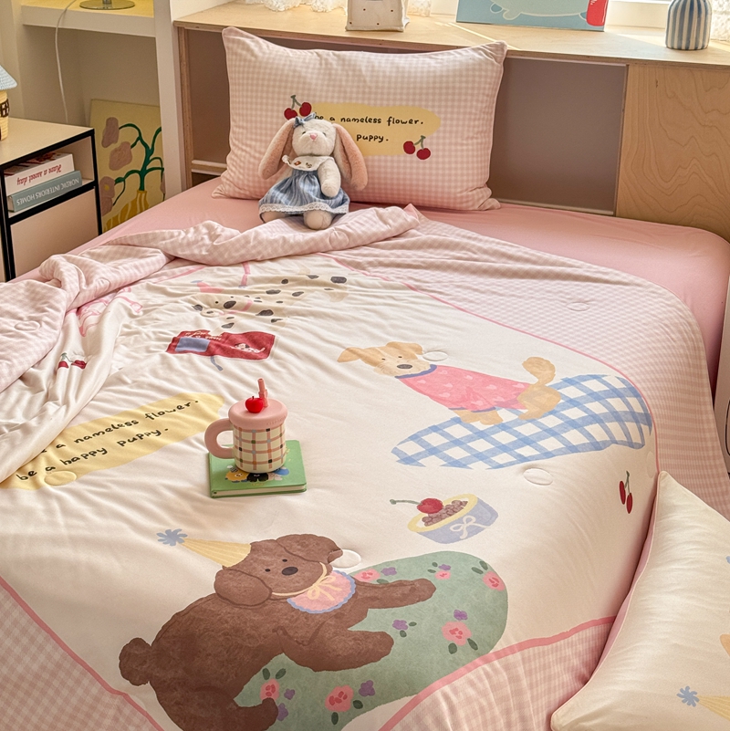 星期八 2025新款针织棉夏被四件套 油画小狗