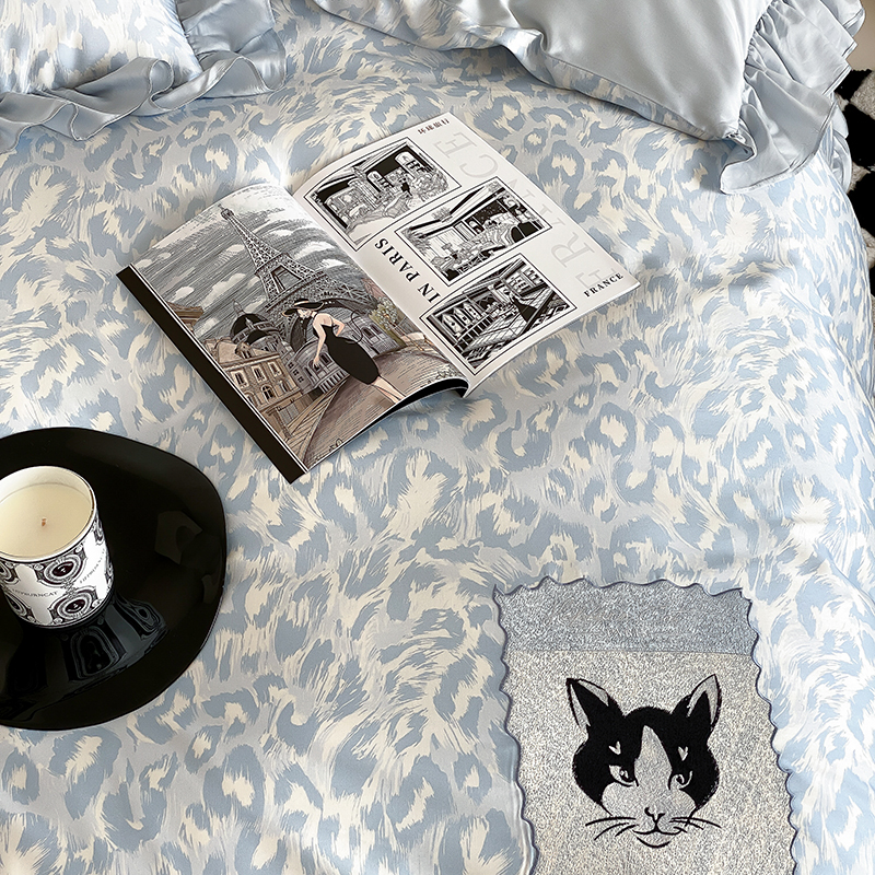 赫帛 2025新款赫本猫联名系列四件套-豹纹猫咪 豹纹猫咪-蓝