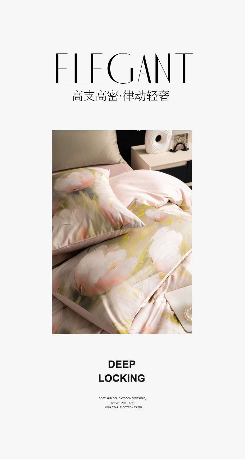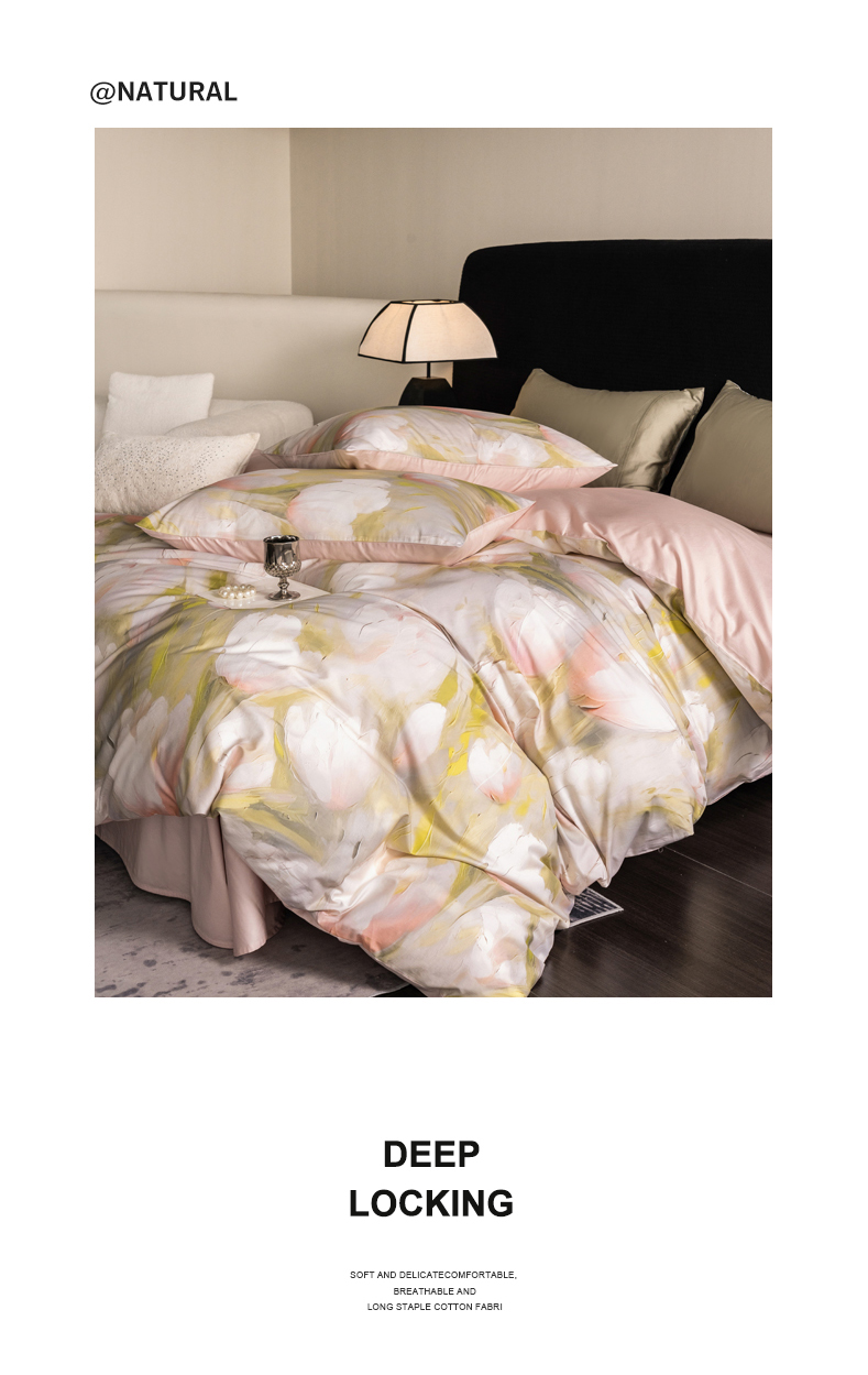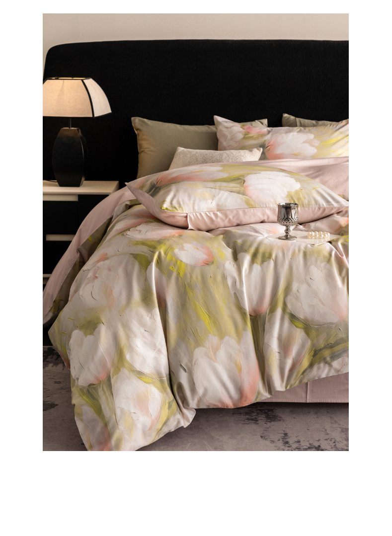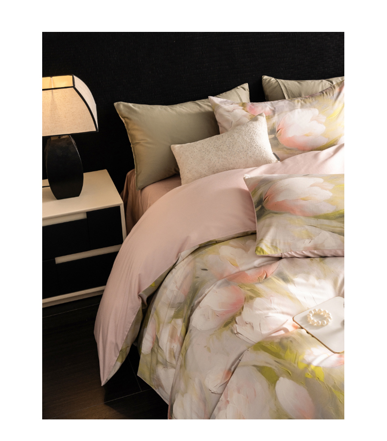 商品名称:立奥被业 2025新款60S数码印花四件套四件套 郁金香粉