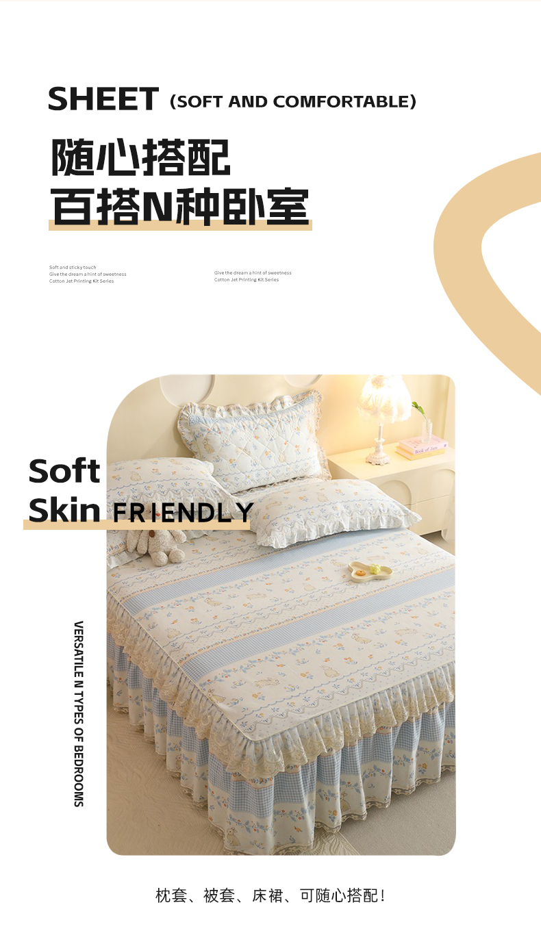 (总)美达家纺 2025新款全棉纯棉AB版蕾丝小花边单层床裙四件套,解语花,南湘,沁雨花叶,悦棠