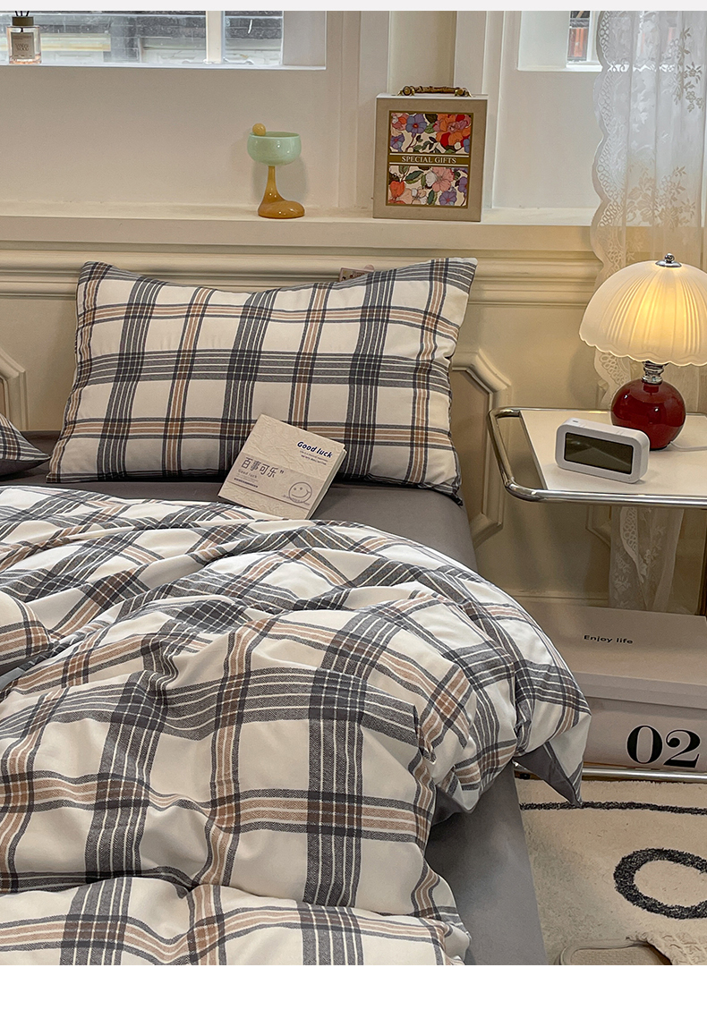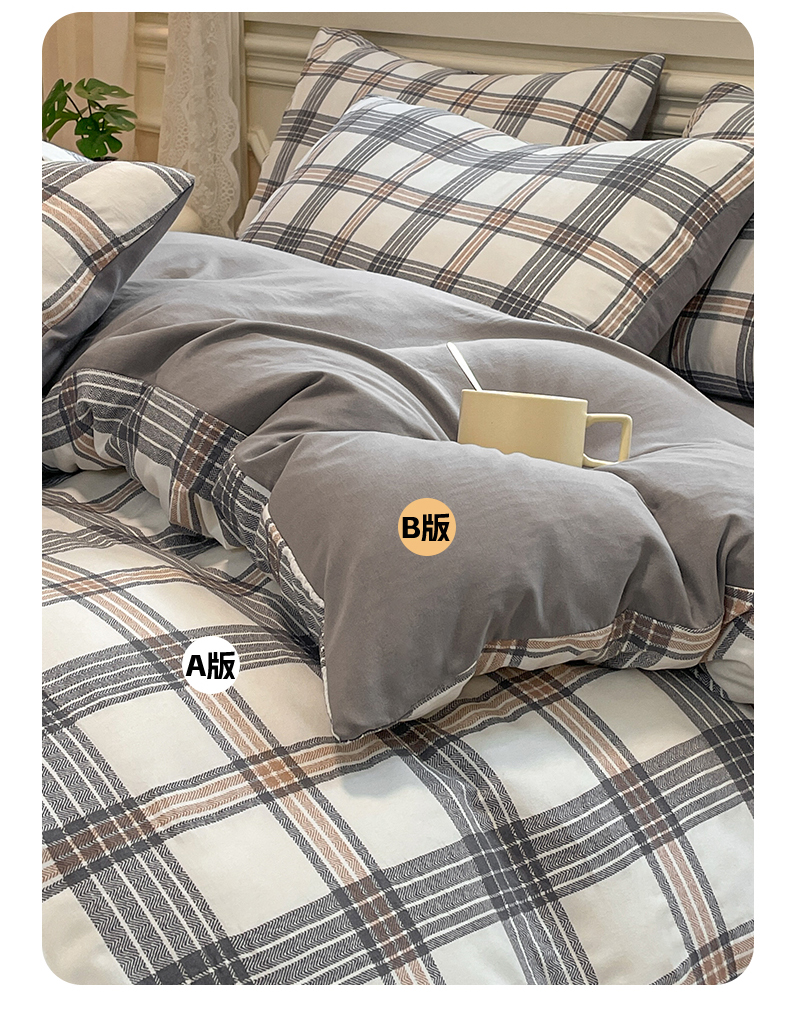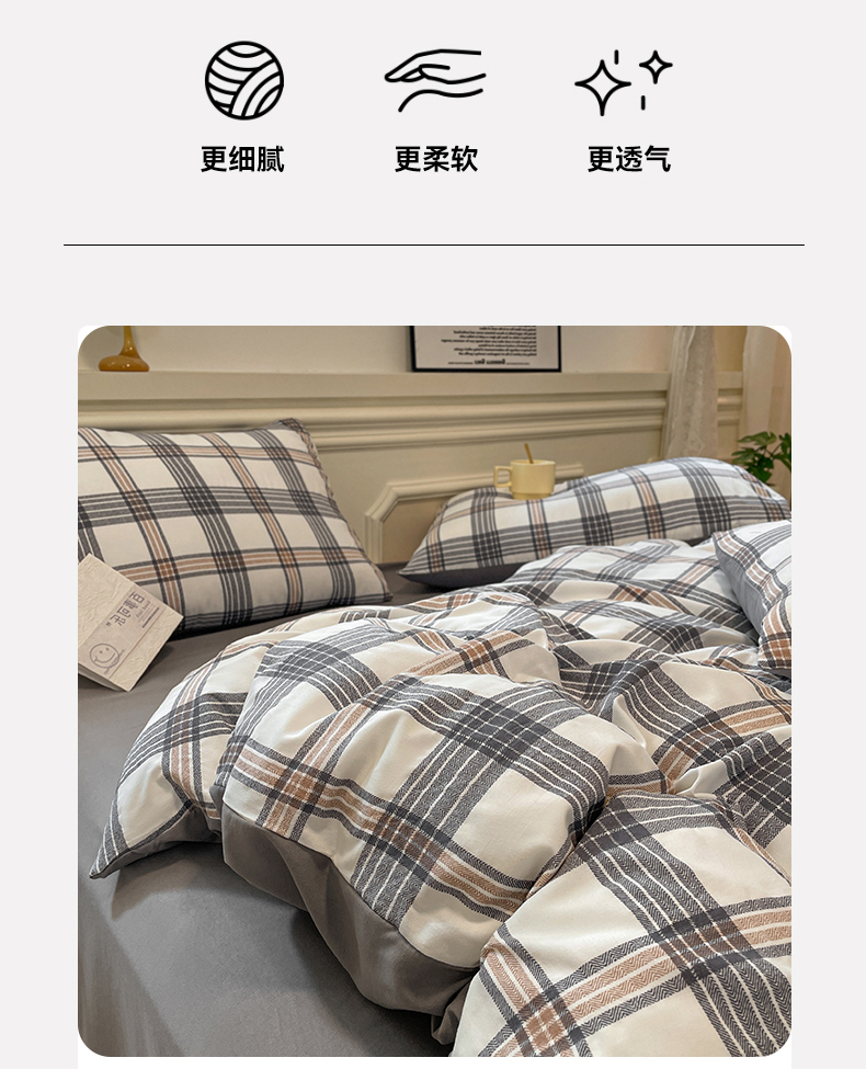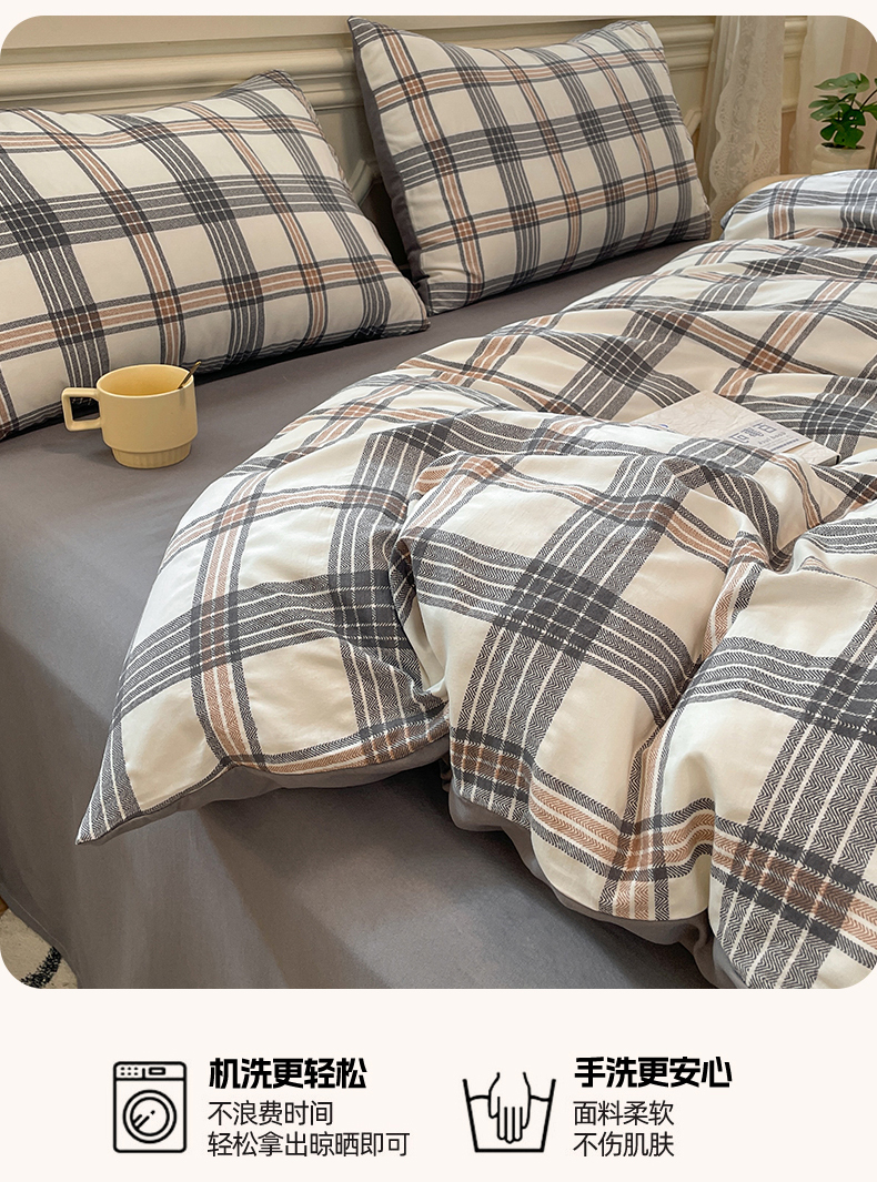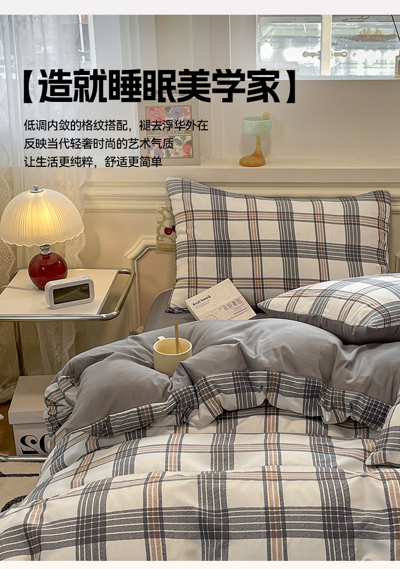 当前位置: 91家纺网 > 商品网购 > 床品套件 > 四件套 > 水洗棉四件套 > 盛秋家纺 2025新款水洗棉格子系列四件套瑞克+中灰
