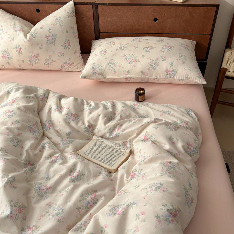 典曼家纺 2025新款双层纱小清新印花四件套-床拍 粉红少女