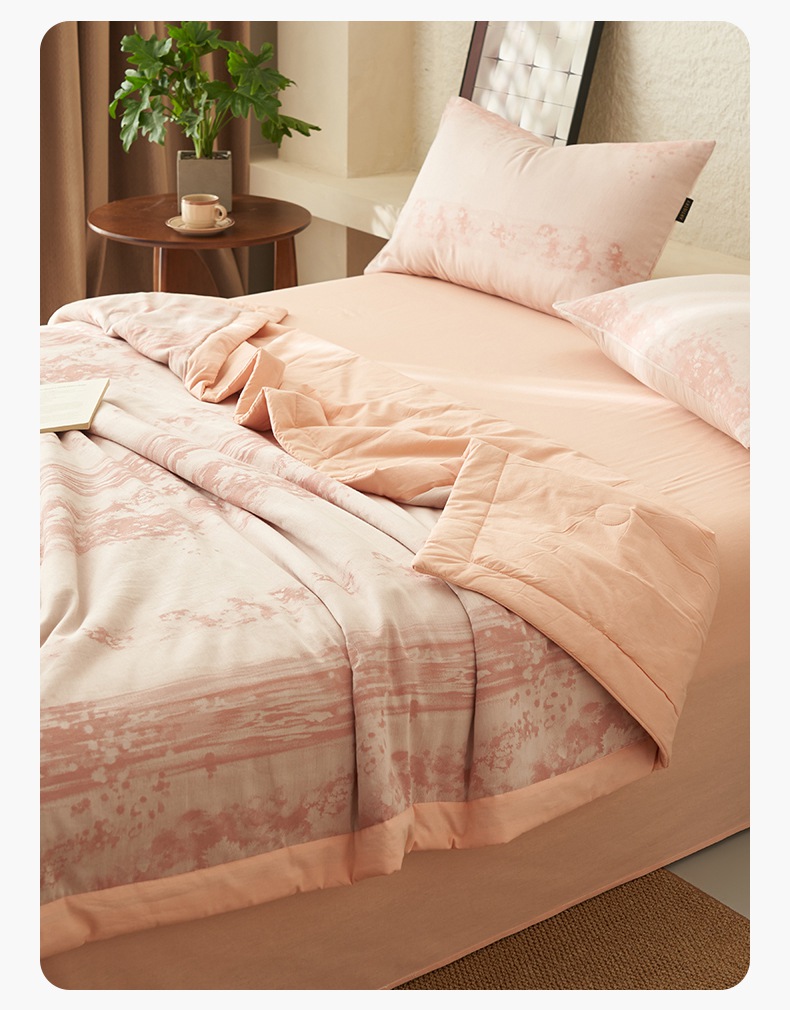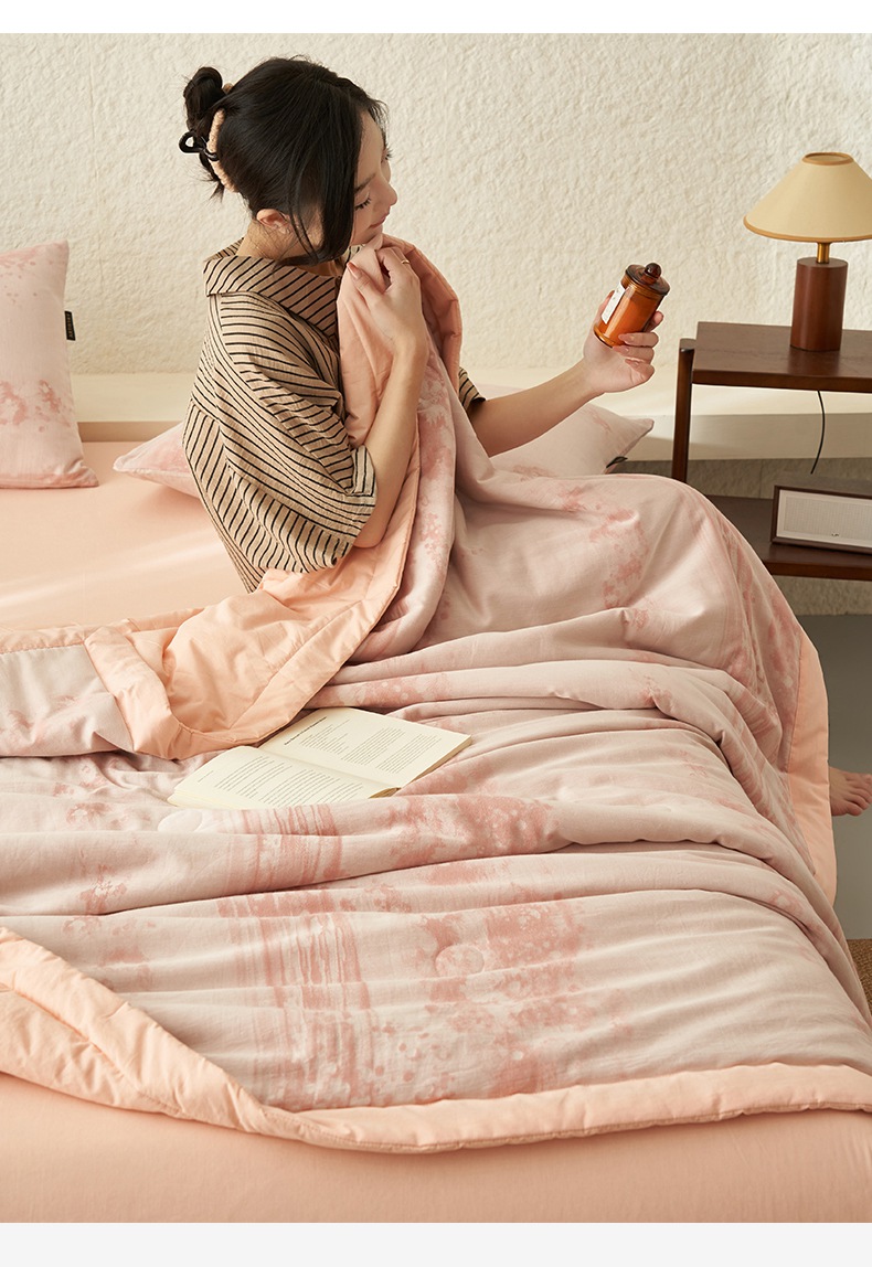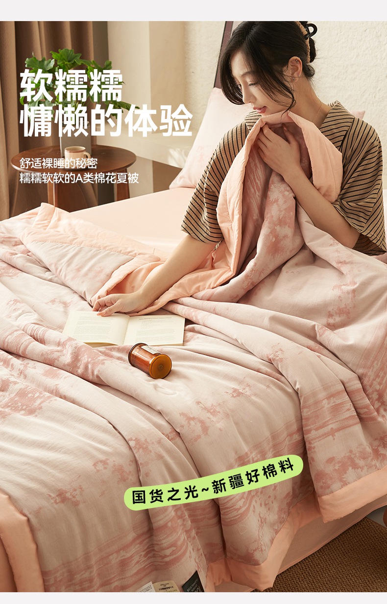 • 91家纺网 家纺一手货源 找家纺 2025新款全棉色织大提花棉花夏凉被 被子被芯 墨凡-粉