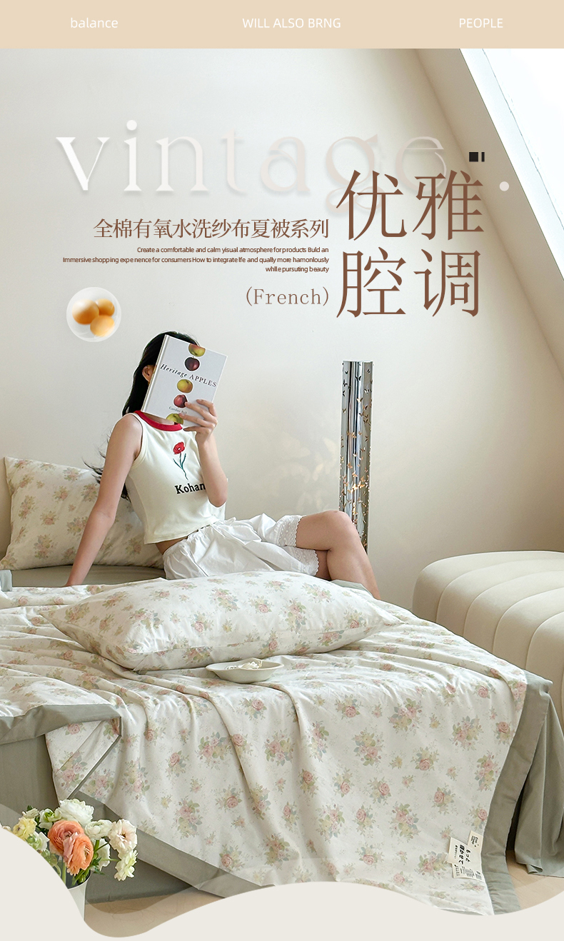 商品名称:大彩家居 2025新款全棉有氧水洗纱布夏被夏凉被 花溪
