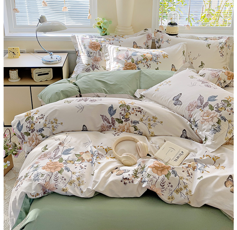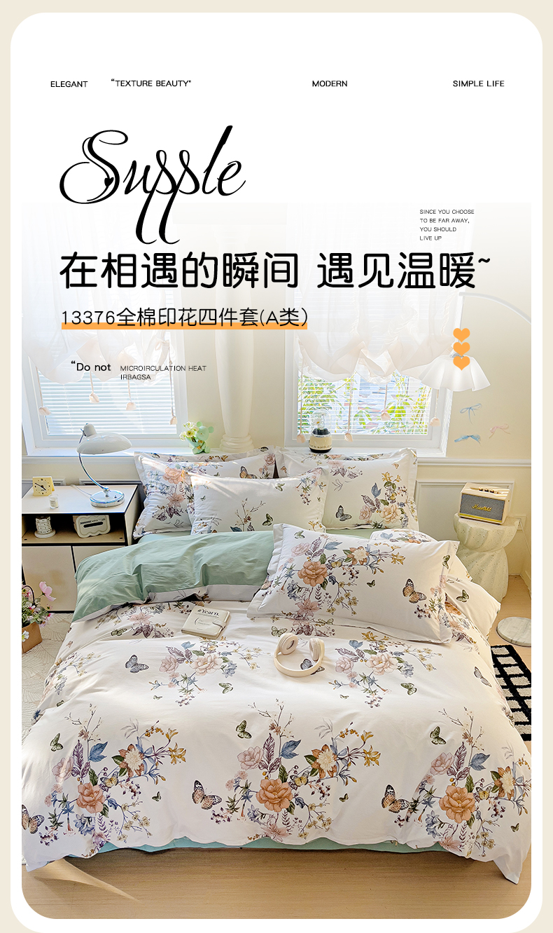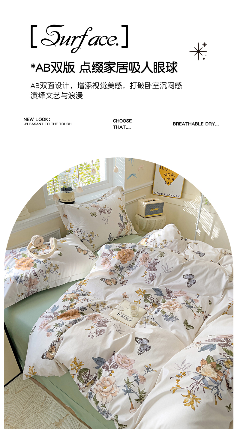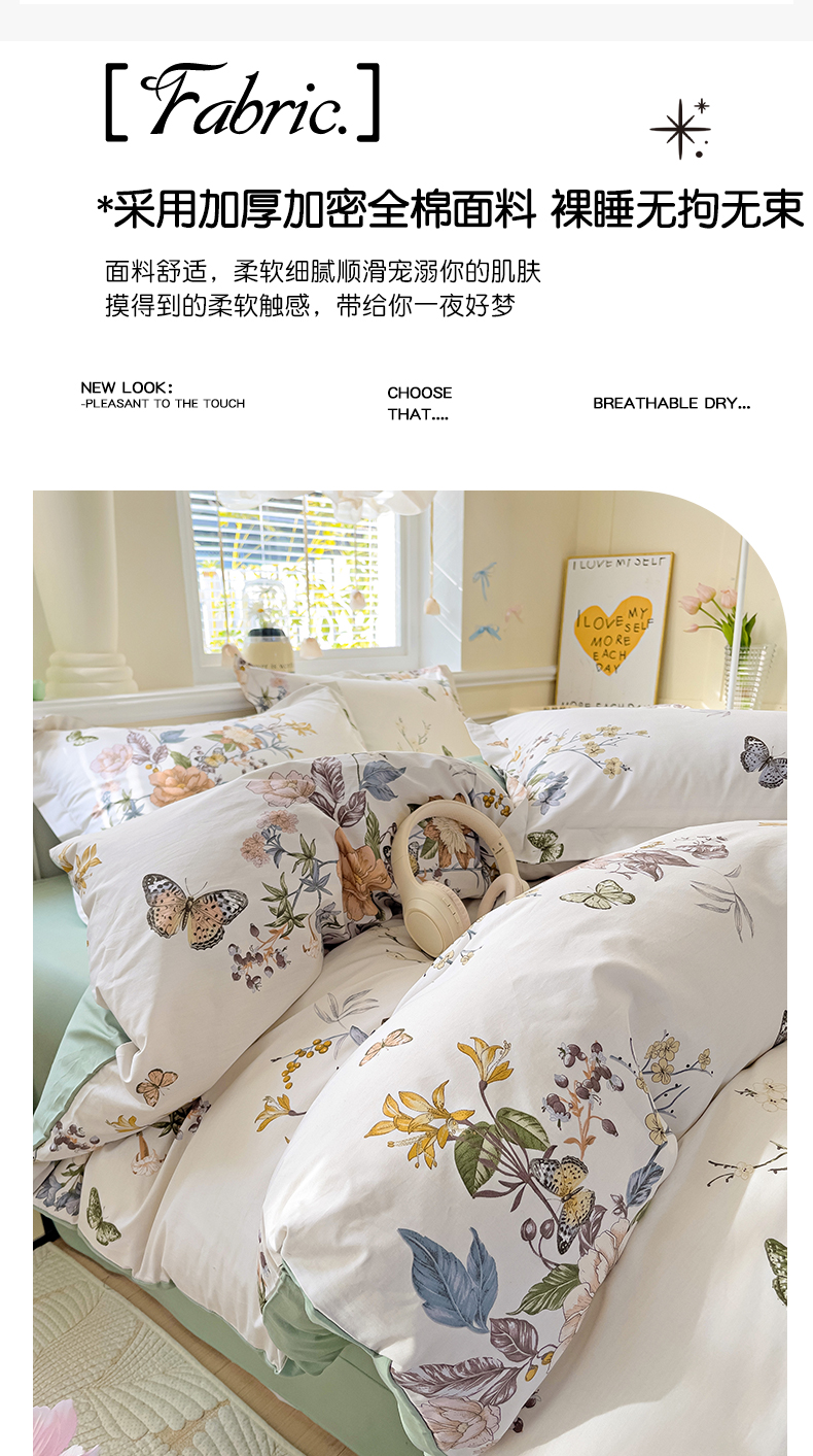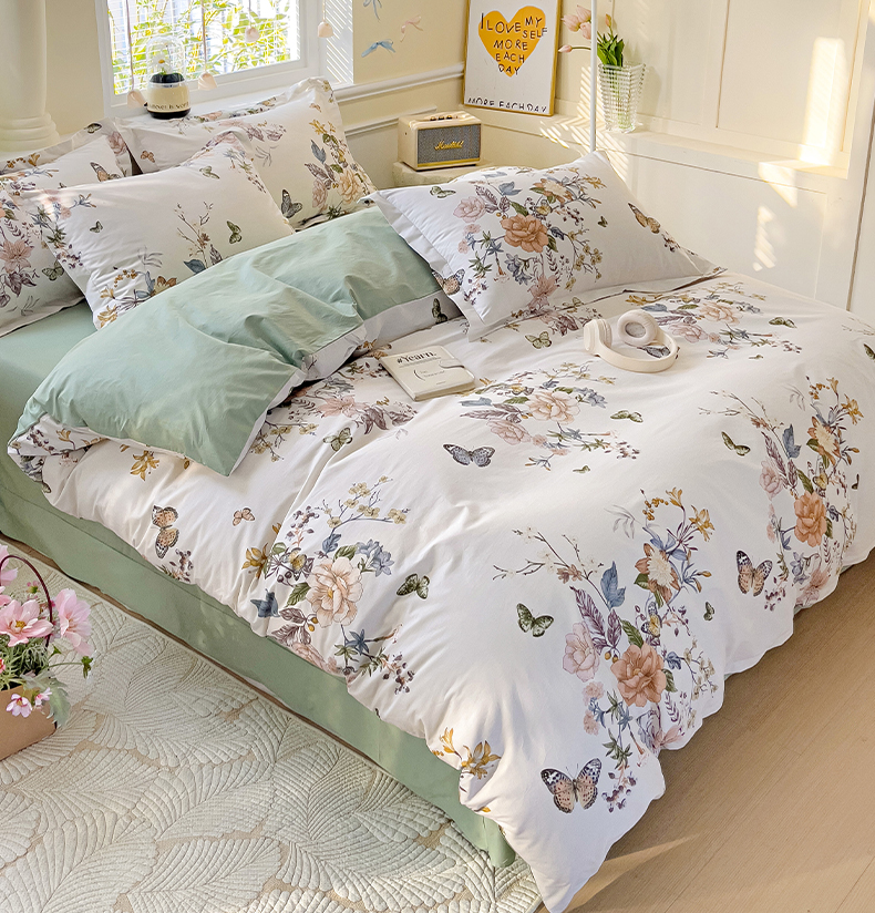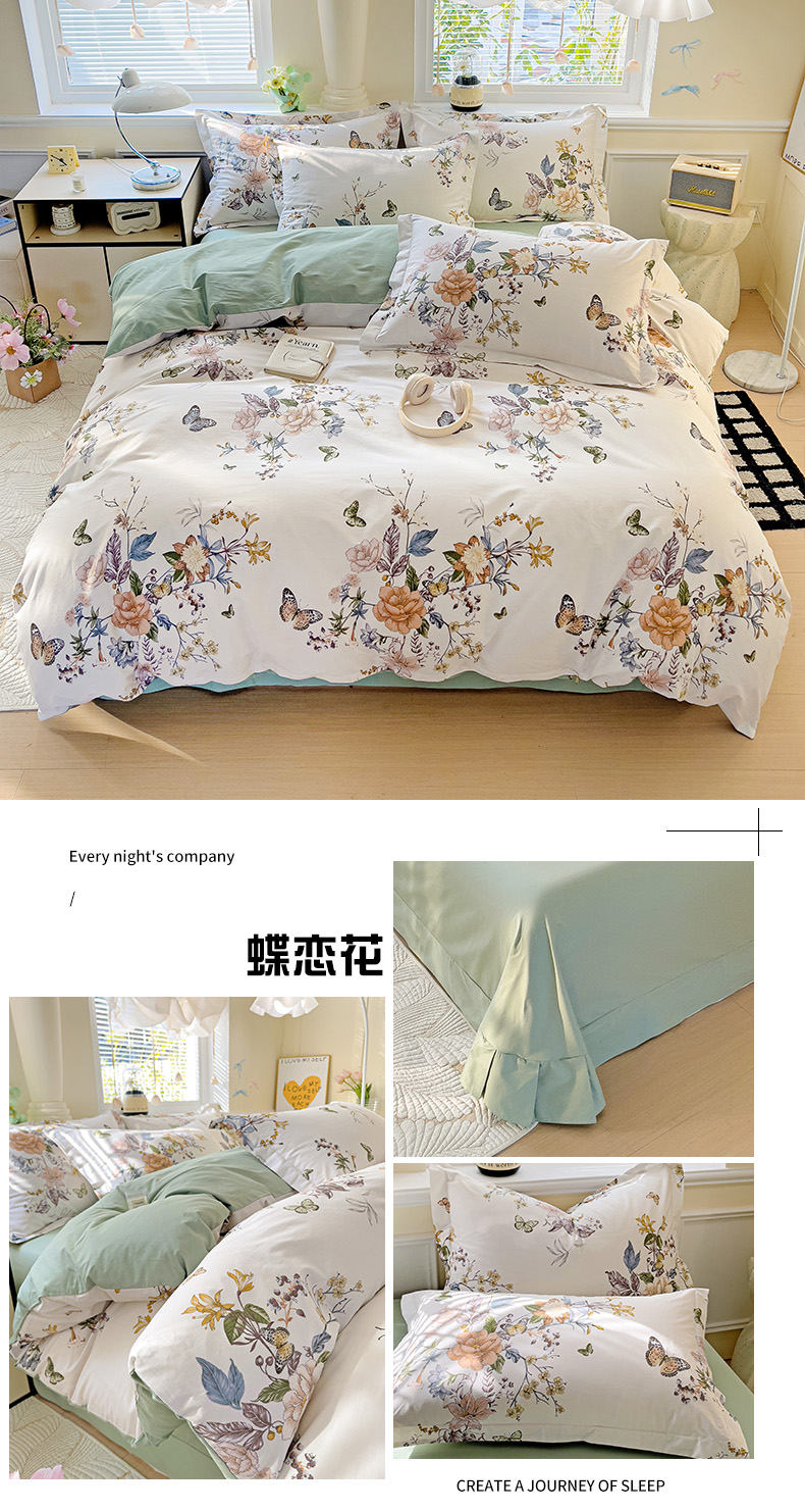 当前位置: 91家纺网 > 商品网购 > 床品套件 > 四件套 > 全棉普通四件套 > 大柏树 2025新款全棉13376印花四件套系列(可定制)-床单四件套蝶恋花