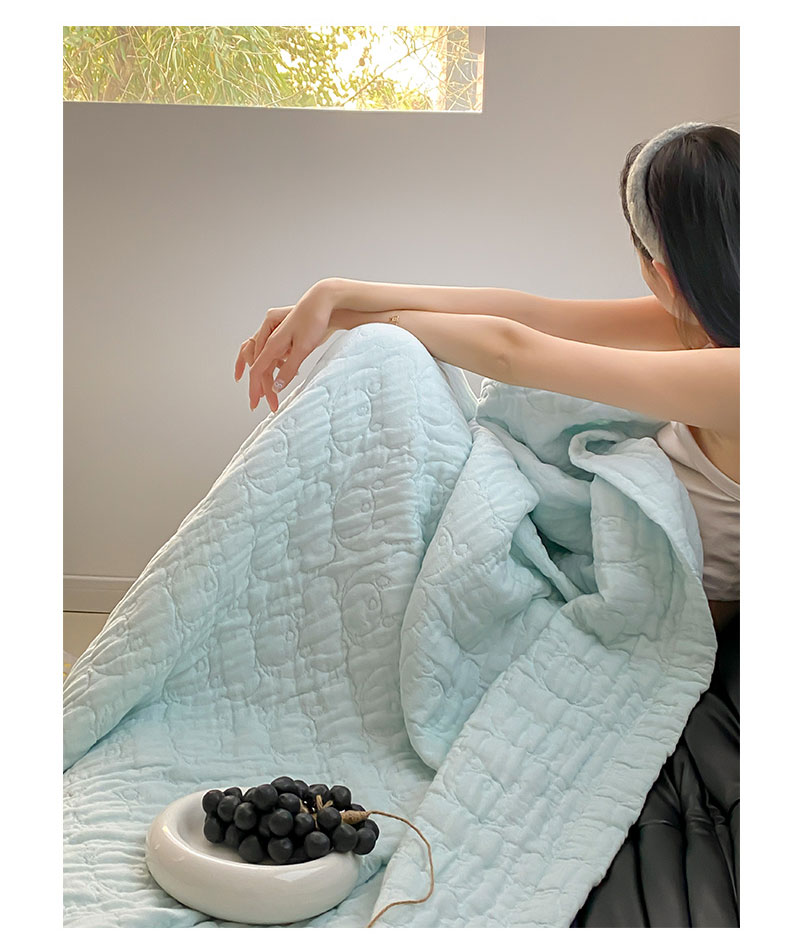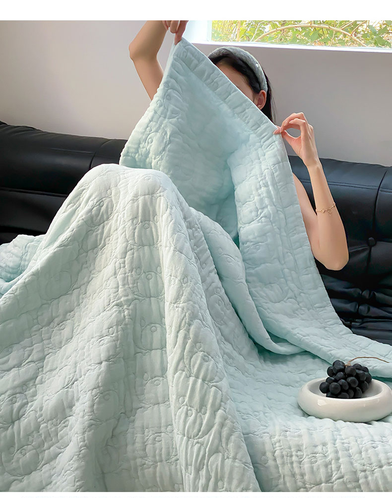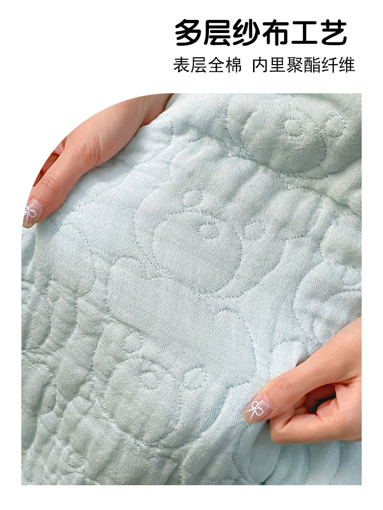商品名称:麻依2025新款全棉韩国纱布夏被子被芯 萌萌熊-水蓝