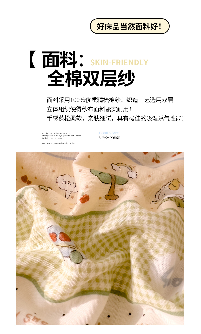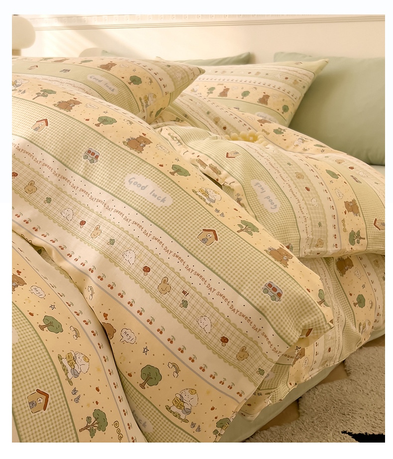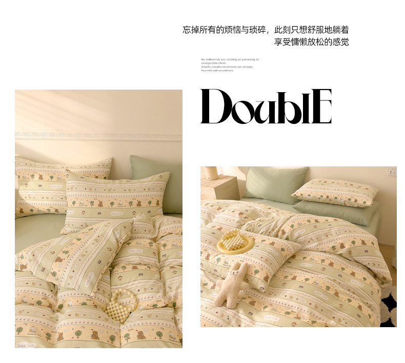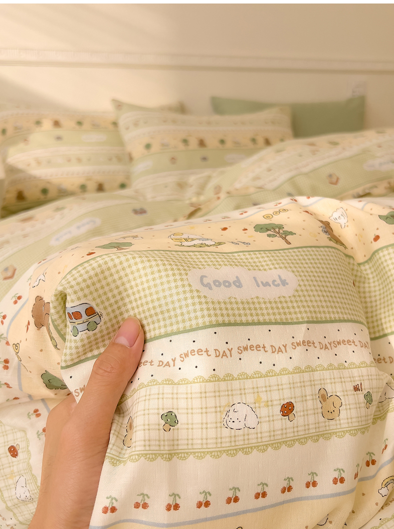 当前位置: 91家纺网 > 商品网购 > 床品套件 > 四件套 > 全棉普通四件套 > DoDo 兜兜 2025新款全棉双层纱印花四件套(可定做尺寸) 兔宝果园
