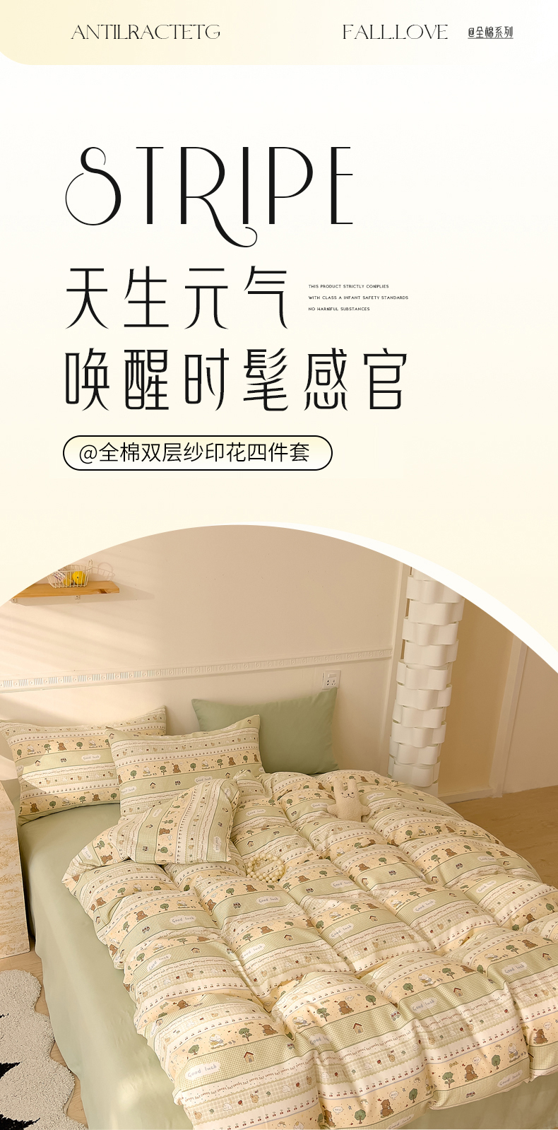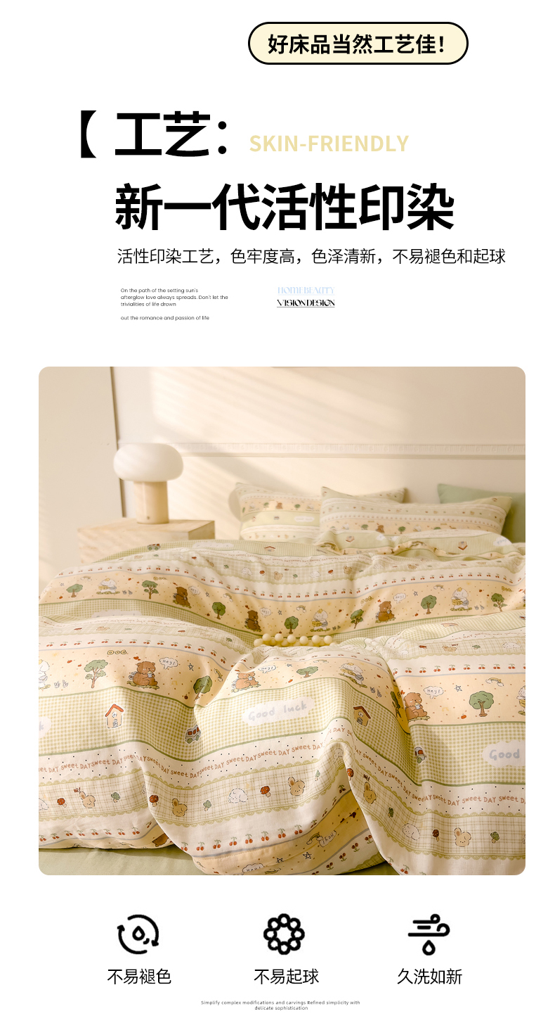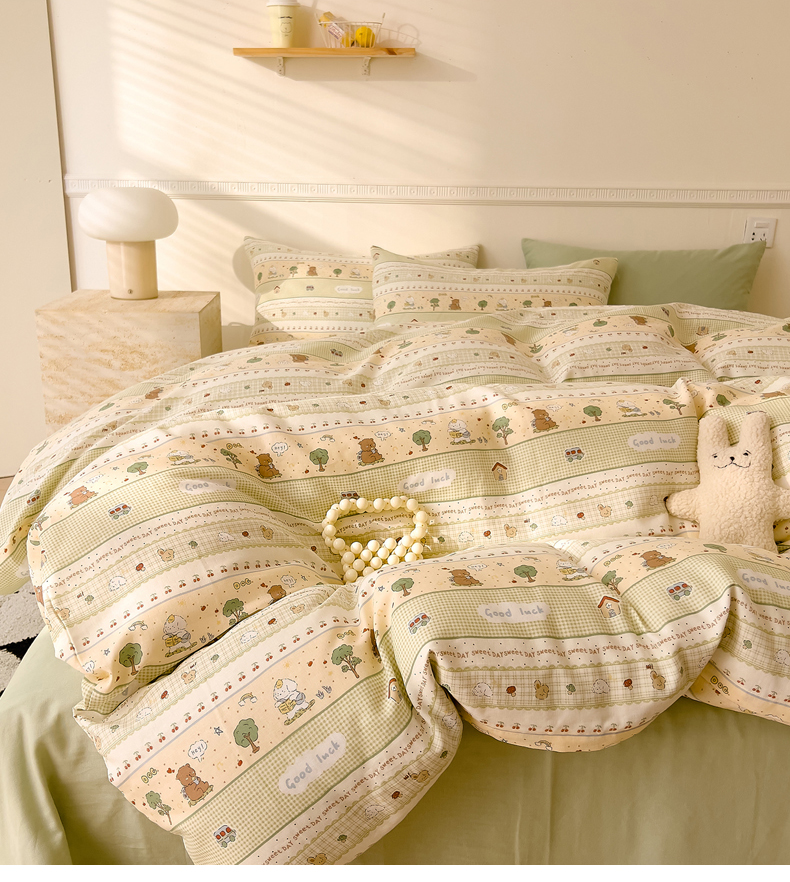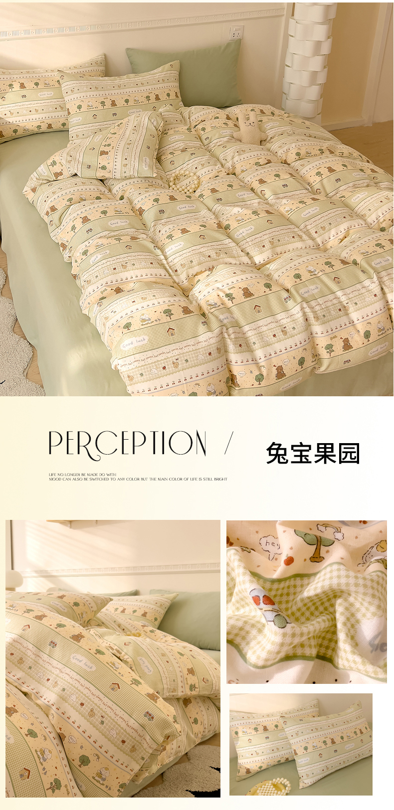 当前位置: 91家纺网 > 商品网购 > 床品套件 > 四件套 > 全棉普通四件套 > DoDo 兜兜 2025新款全棉双层纱印花四件套(可定做尺寸) 兔宝果园