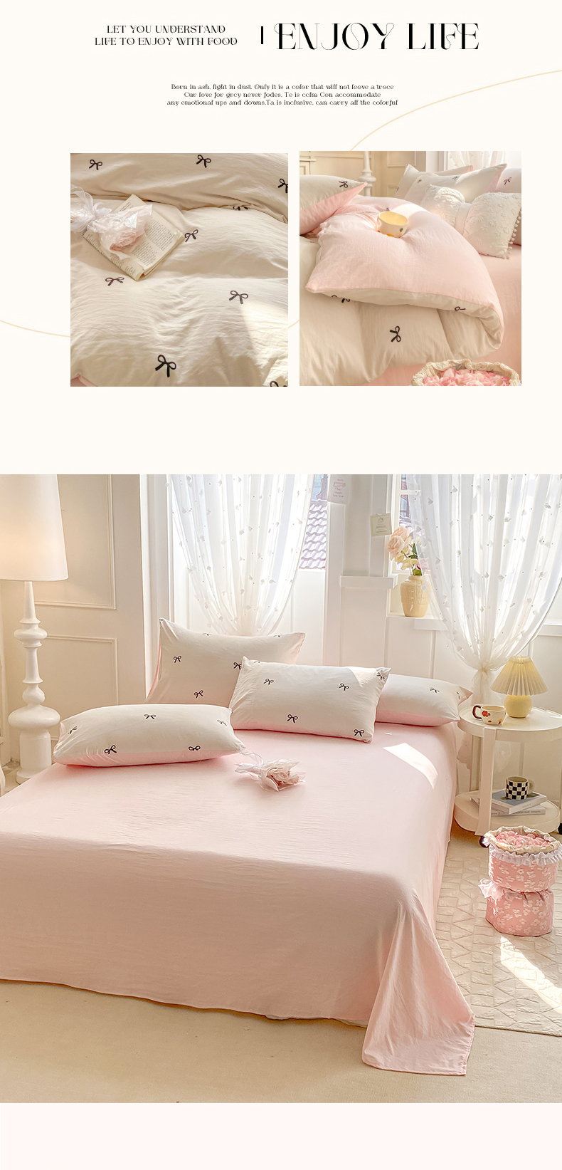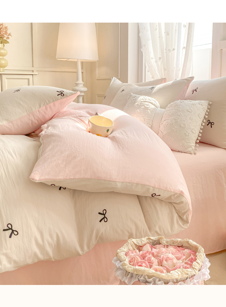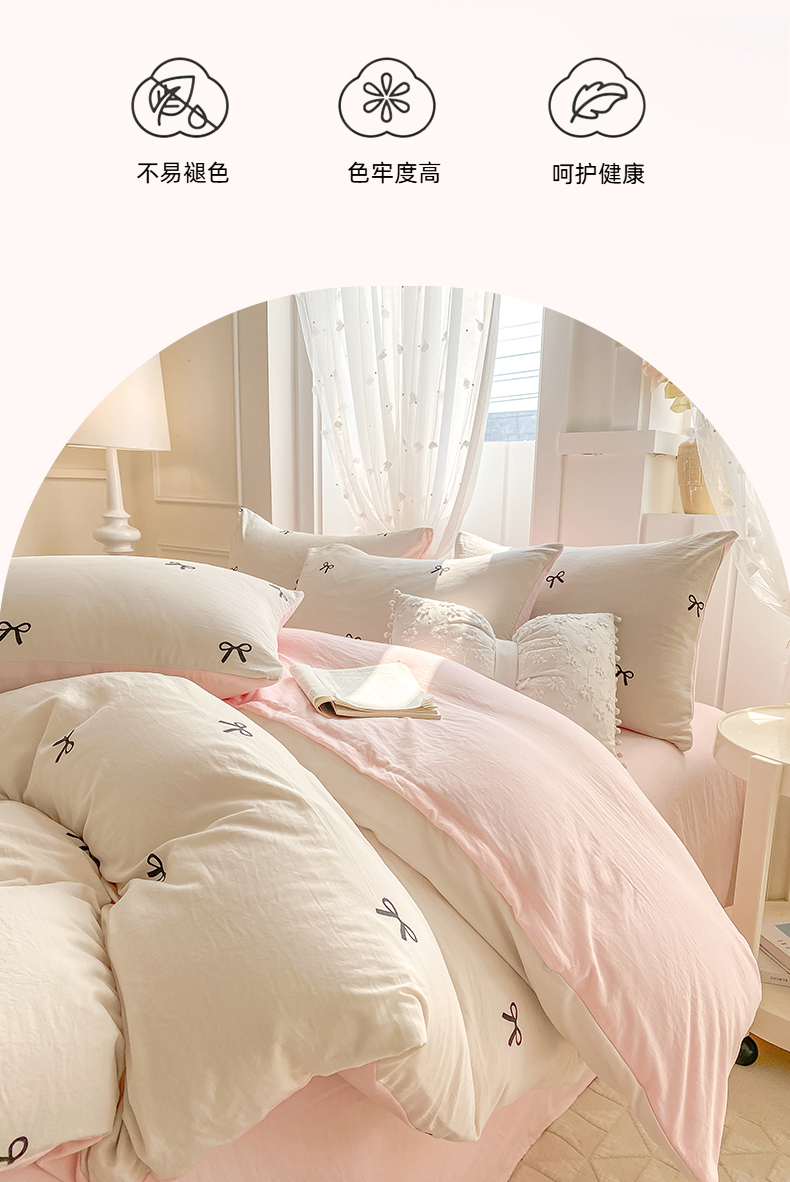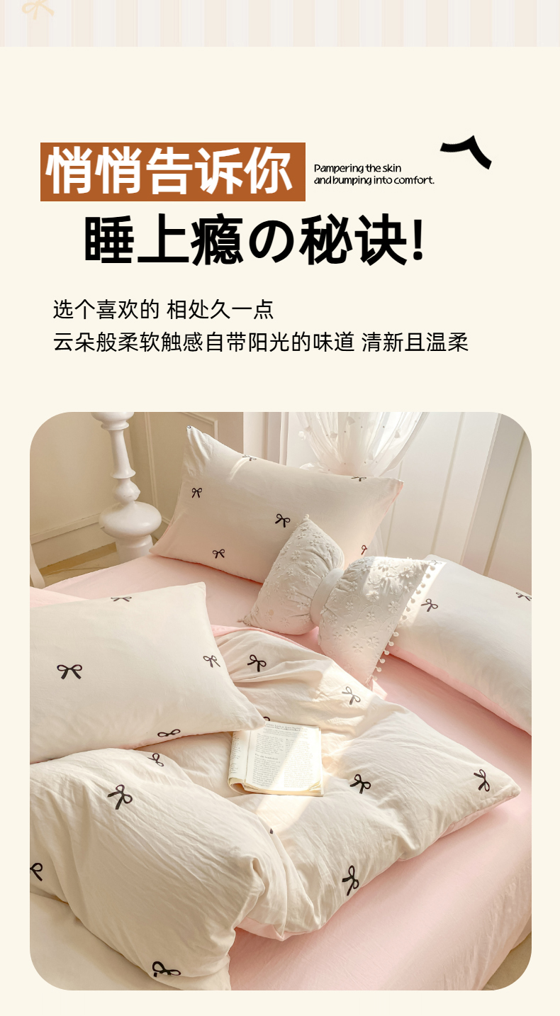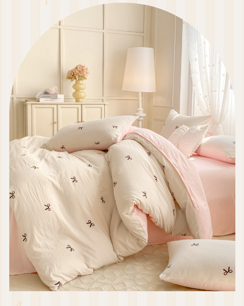 当前位置: 91家纺网 > 商品网购 > 床品套件 > 四件套 > 全棉普通四件套 > 二八年华 2025新款蝴蝶结系列高克重加厚水洗棉四件套 米黄