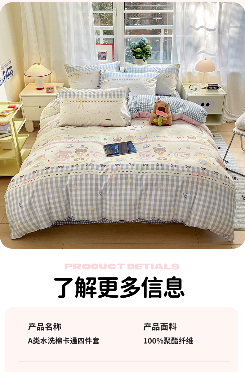 当前位置: 91家纺网 > 商品网购 > 床品套件 > 四件套 > 水洗棉四件套 > 盛秋家纺 2025新款水洗棉印花四件套-卡通系列 开心派对+蓝小格