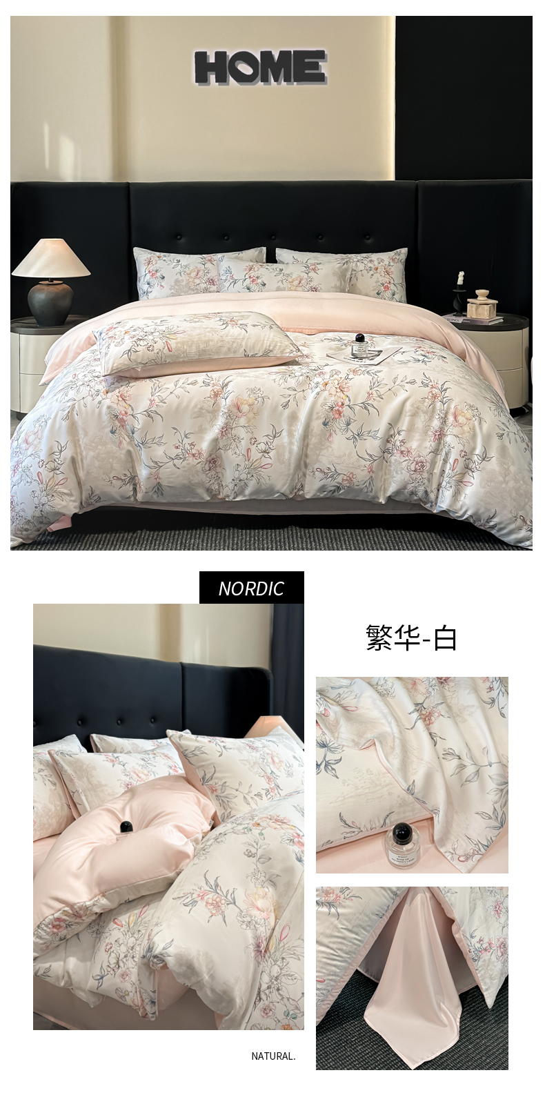 商品名称:慕晨 2025春夏新品莱赛尔天丝数码印花四件套莱赛尔夏被四件套天丝夏凉被直播热款 繁华-白