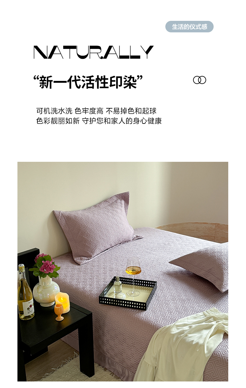 琳可家居2025新款60S双面莱赛尔纤维纯色床盖三件套-溯回系列 溯回-清新紫