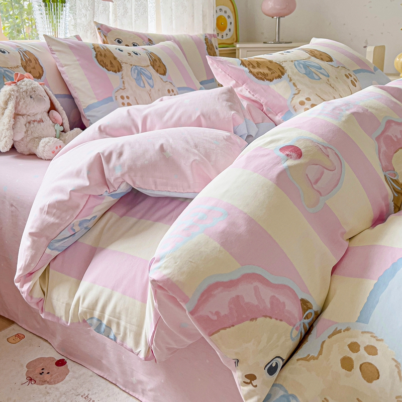 (总)麦朵家居 2025新款高克重毛球绣花四件套印花牛奶绒四件套高克重宝宝绒床裙款四件套牛奶绒床笠兔绒三件套,小象乐园,茶杯小猫,蛋糕小狗,可爱女孩,曼琳粉