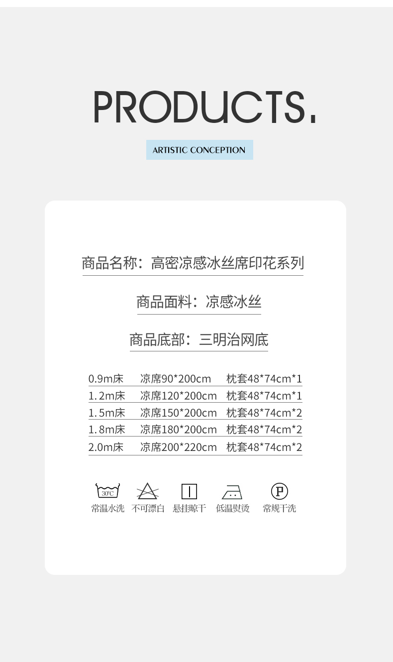 商品名称:(总)丝羽坊 2025新款小版印花冰丝凉席平铺床席款冰丝席碳光冰丝凉席