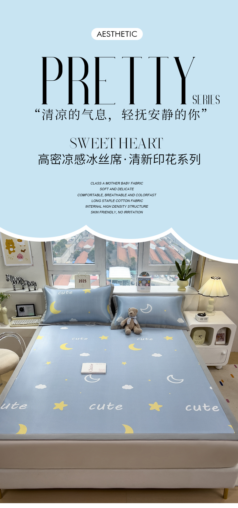 (总)丝羽坊 2025新款小版印花冰丝凉席平铺床席款冰丝席碳光冰丝凉席