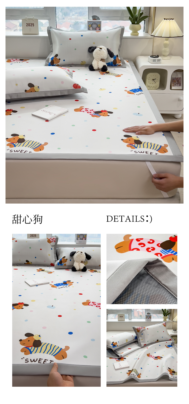 商品名称:丝羽坊 2025新款小版印花冰丝凉席平铺床席款冰丝席碳光冰丝凉席 甜心狗