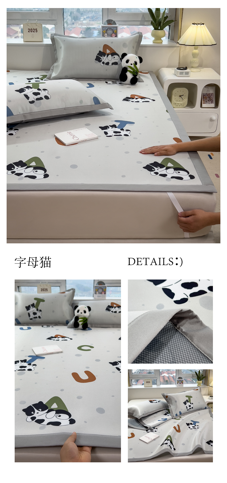 商品名称:丝羽坊 2025新款小版印花冰丝凉席平铺床席款冰丝席碳光冰丝凉席 字母猫