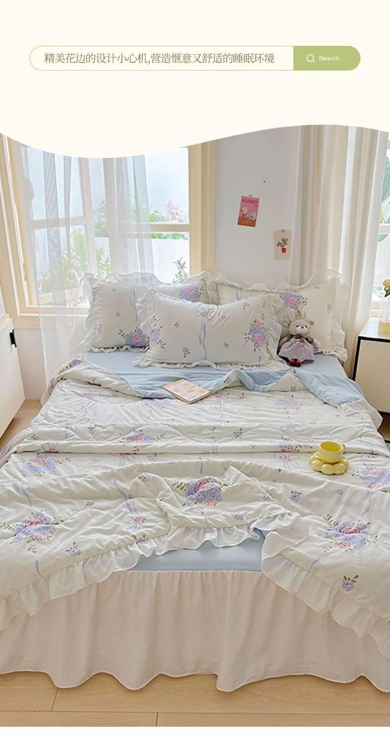 • 91家纺网 家纺一手货源 找家纺 家贝爱 2025新款泡泡纱水洗棉花边床单/床裙款夏被四件套夏凉被 安婉蓝 91家纺网 家纺一手货源 找家纺 家贝爱 2025新款泡泡纱水洗棉花边床单/床裙款夏被四件套夏凉被 安婉蓝