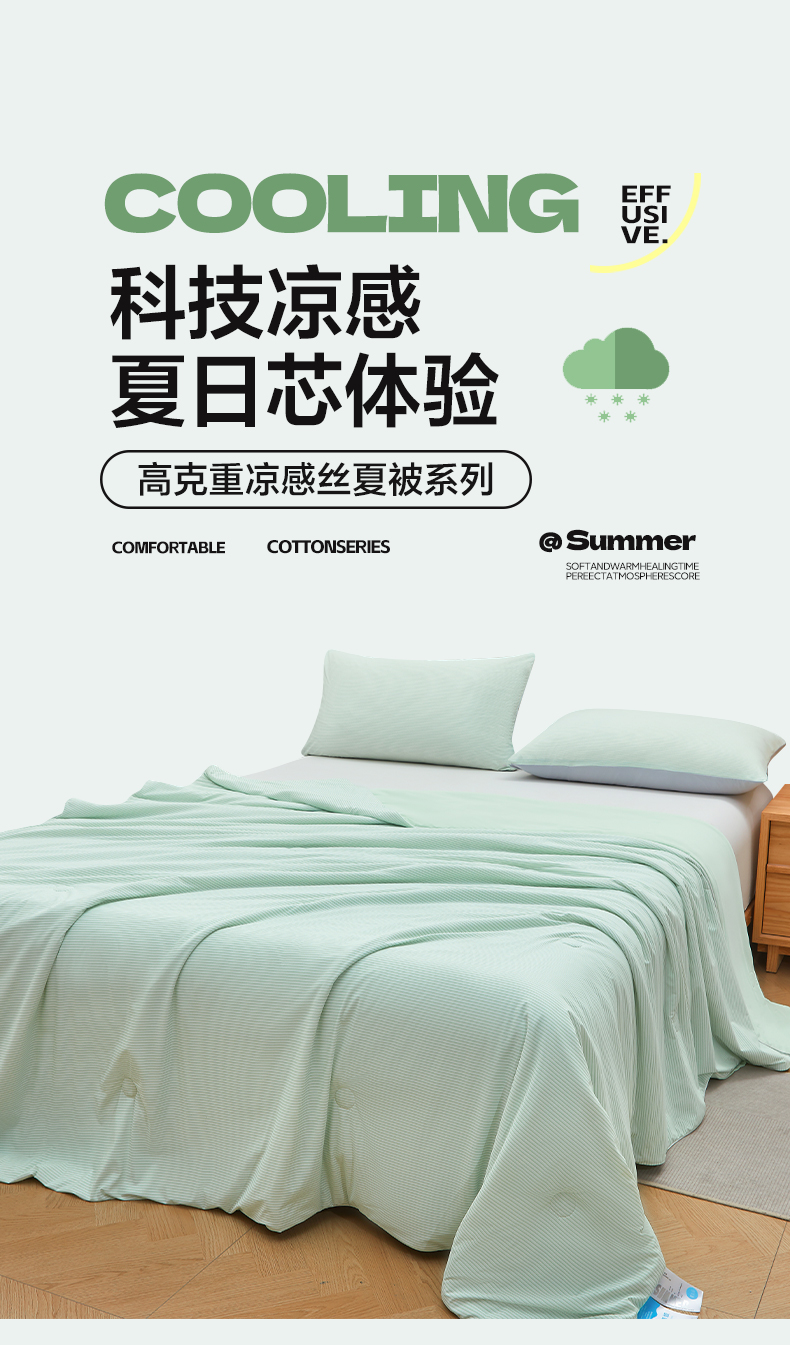 商品名称:2025新款A类高克重(10%氨纶)云母凉感冰丝夏被夏凉被 云母粉