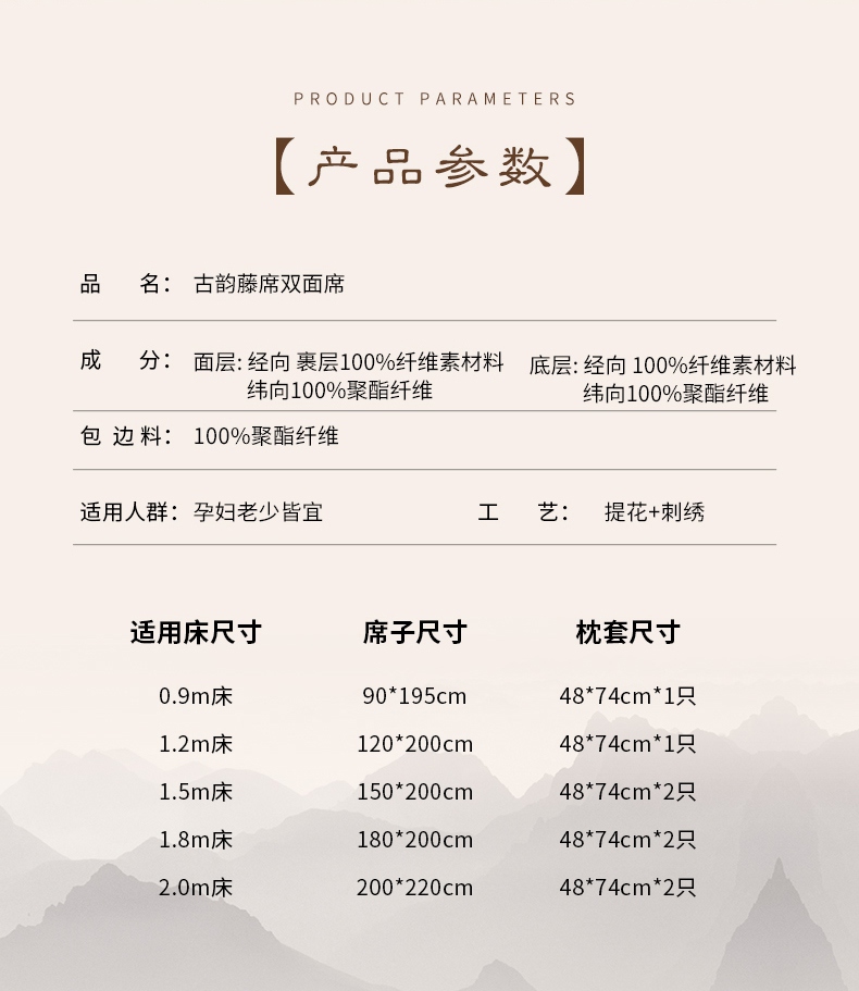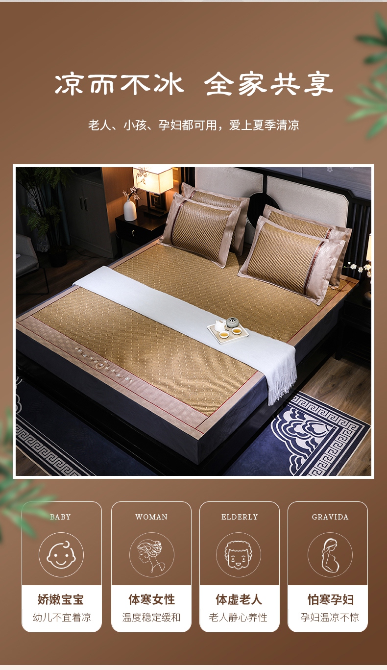 商品名称:(总)小牛席业 2025新款绣花古藤凉席【双面席】凉席藤席冰藤席竹席空调席草席冰丝席豆豆席乳胶席三件套
