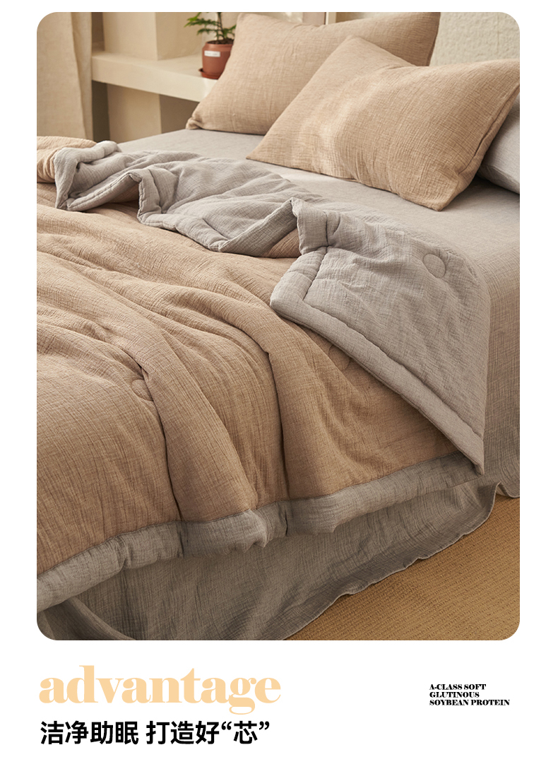 商品名称:(总)金鹰2025新款A类纯棉皱皱纱大豆夏被四件套全棉夏凉被空调被