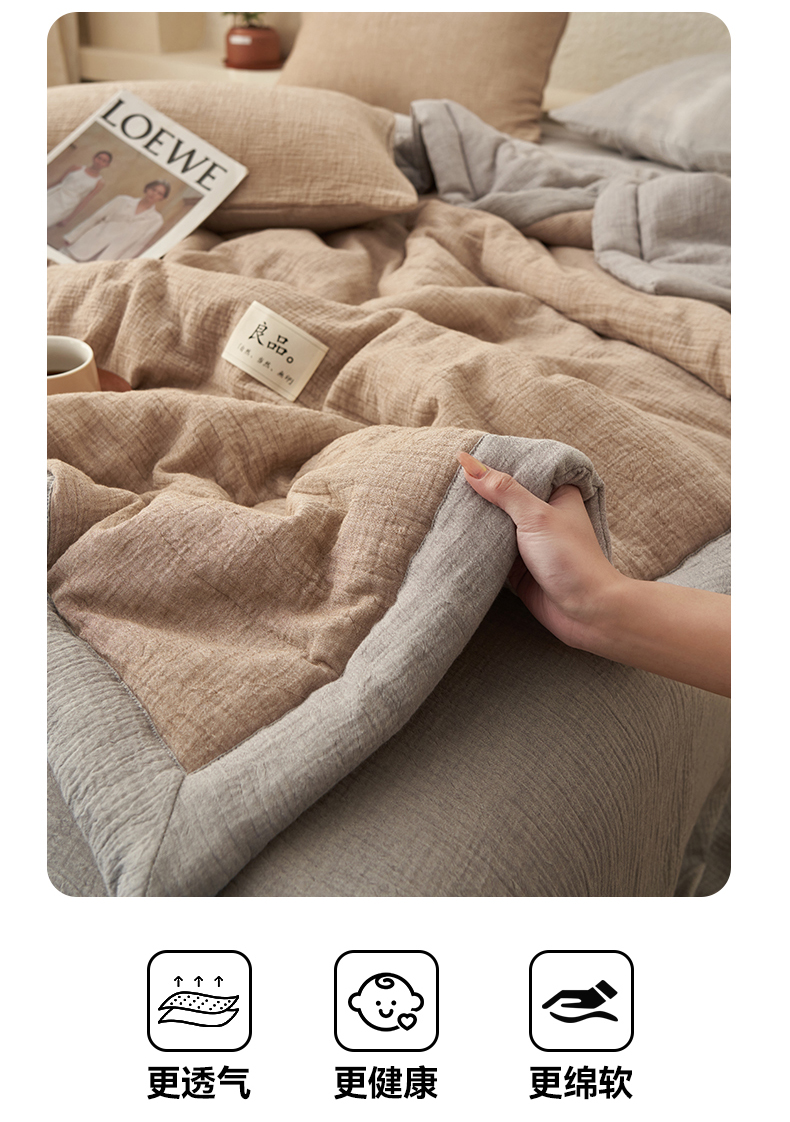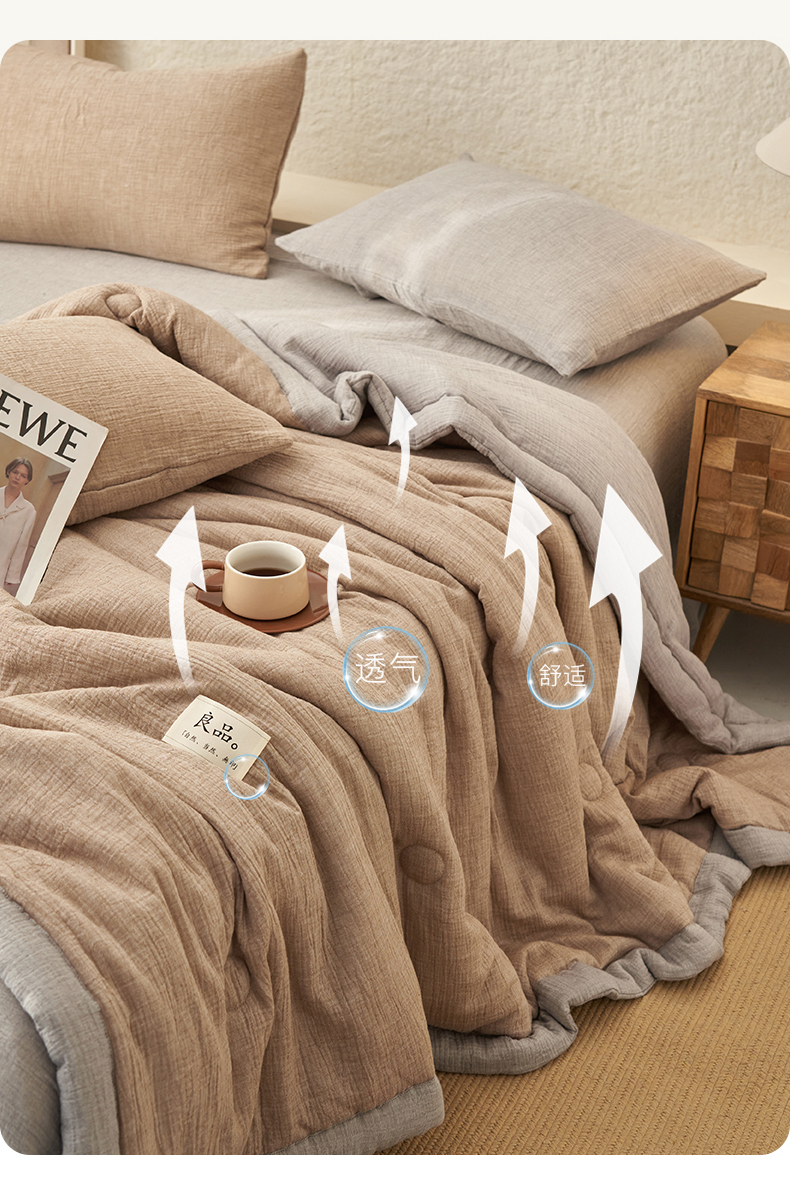 (总)金鹰2025新款A类纯棉皱皱纱大豆夏被四件套全棉夏凉被空调被