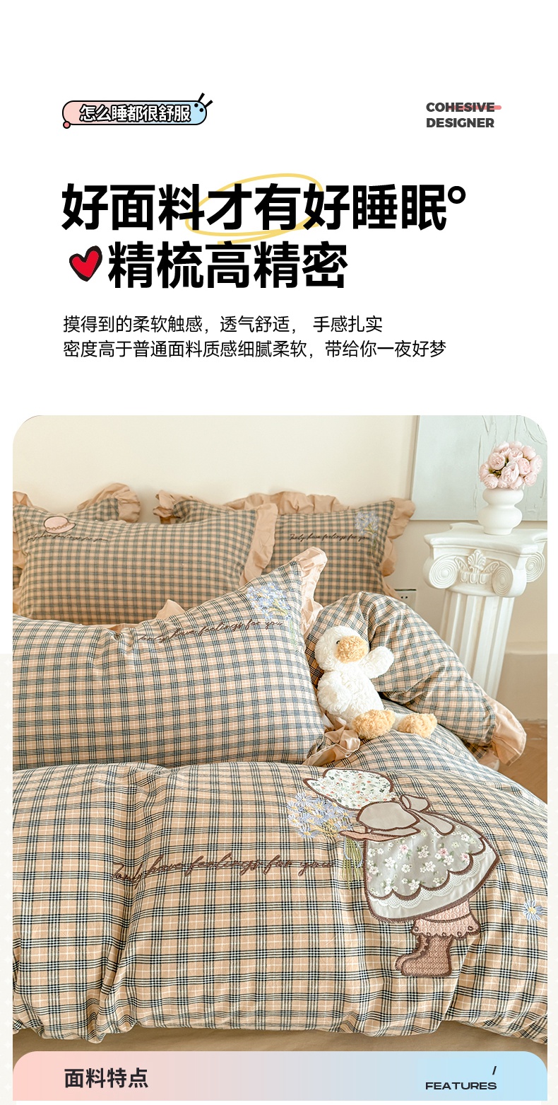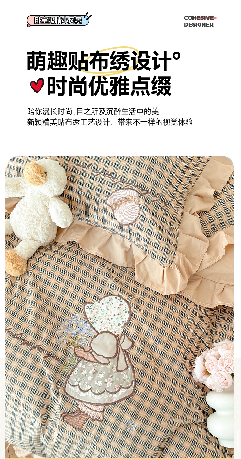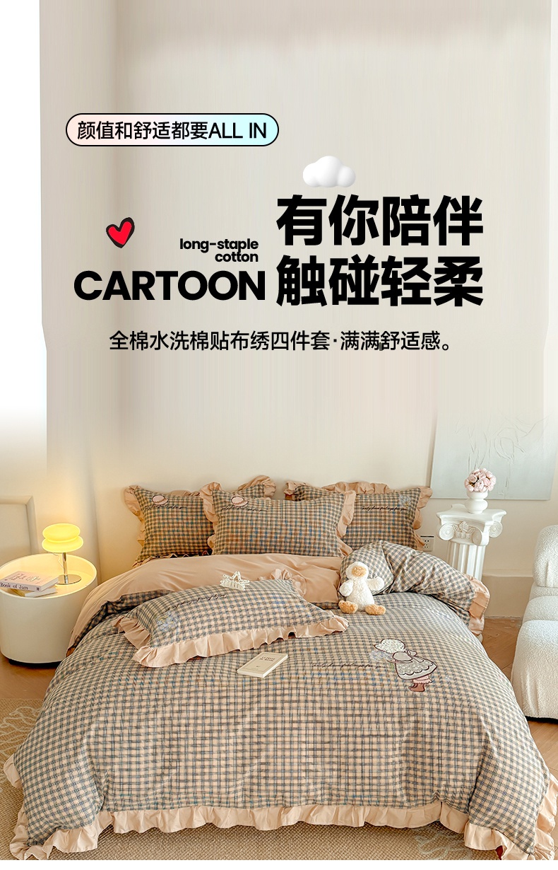 当前位置: 91家纺网 > 商品网购 > 床品套件 > 四件套 > 全棉普通四件套 > 蜜柚 2025新款色织水洗棉贴布花边款四件套-童趣 童趣-卡其