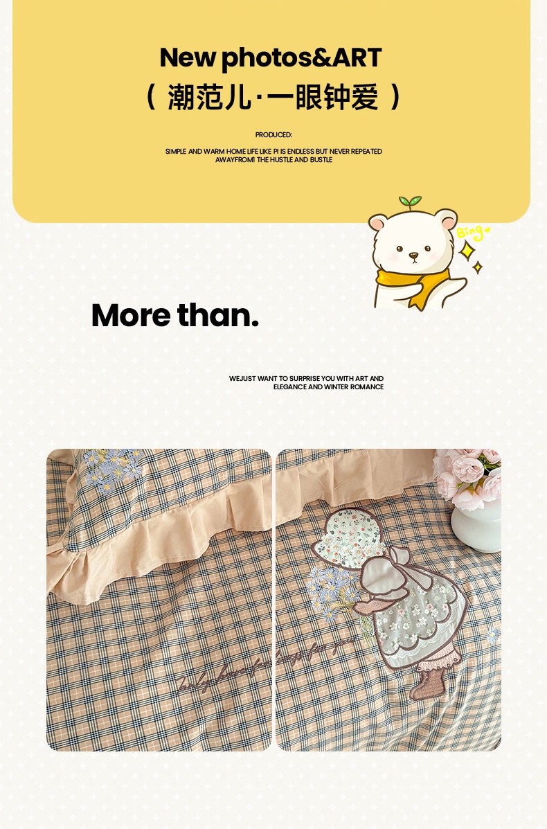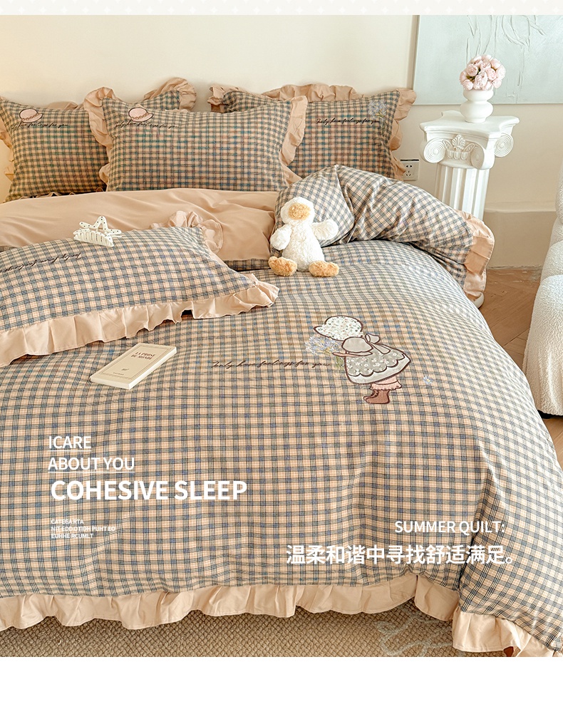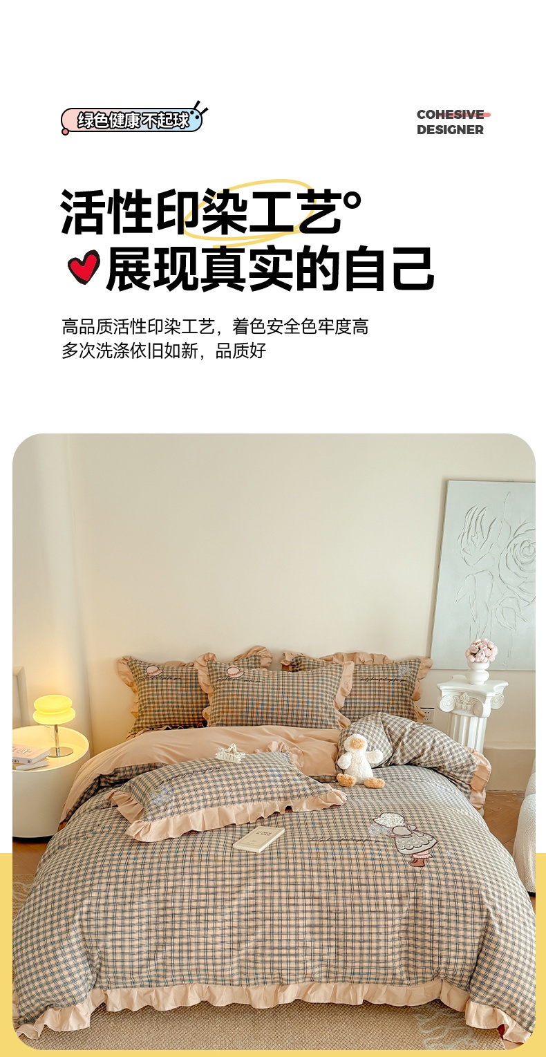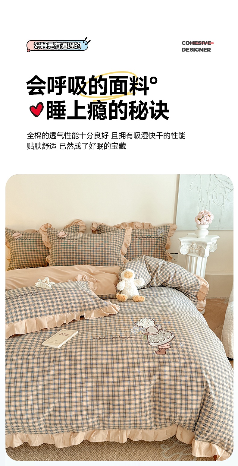 当前位置: 91家纺网 > 商品网购 > 床品套件 > 四件套 > 全棉普通四件套 > 蜜柚 2025新款色织水洗棉贴布花边款四件套-童趣 童趣-卡其