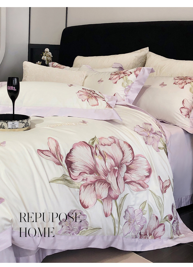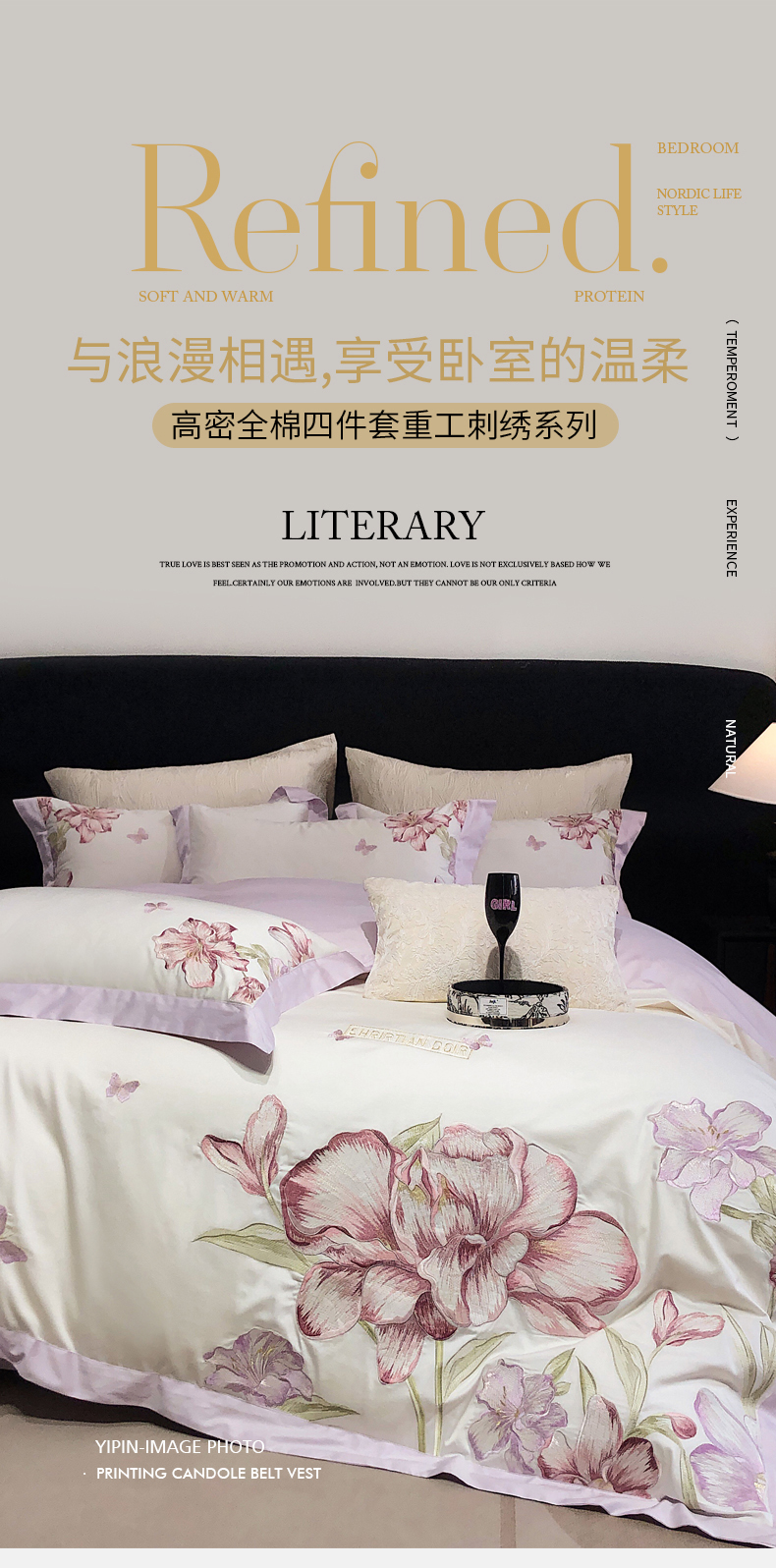 2025新款全棉50s绣花刺绣款四件套 雯棠-紫