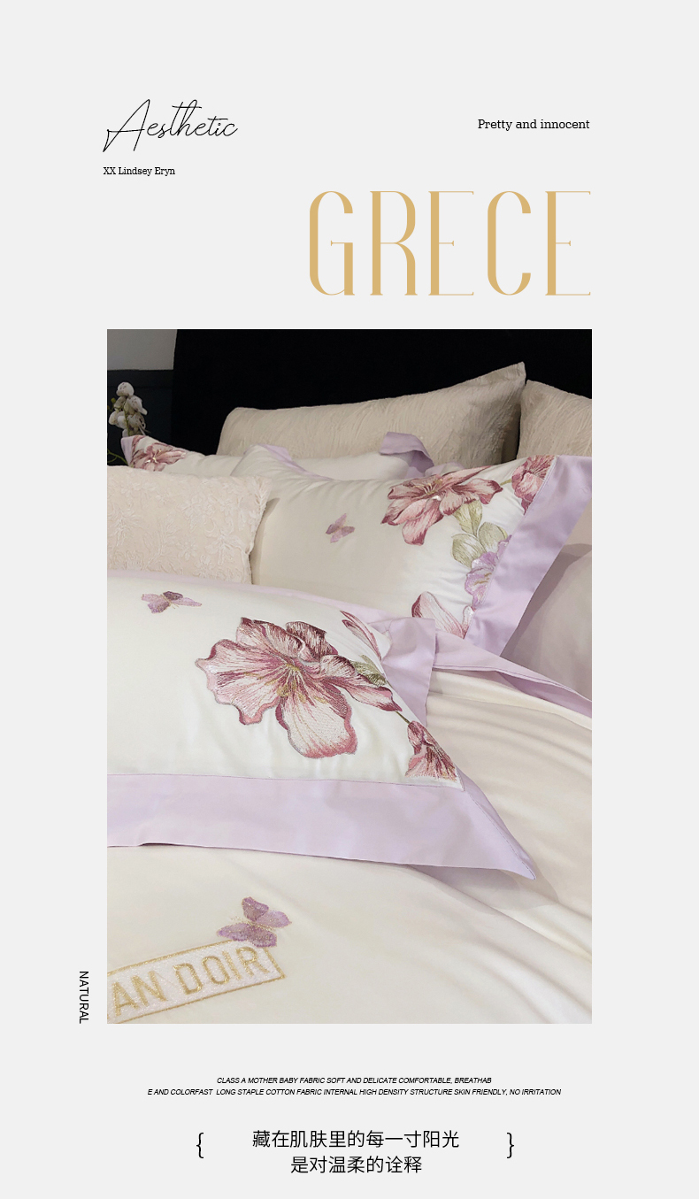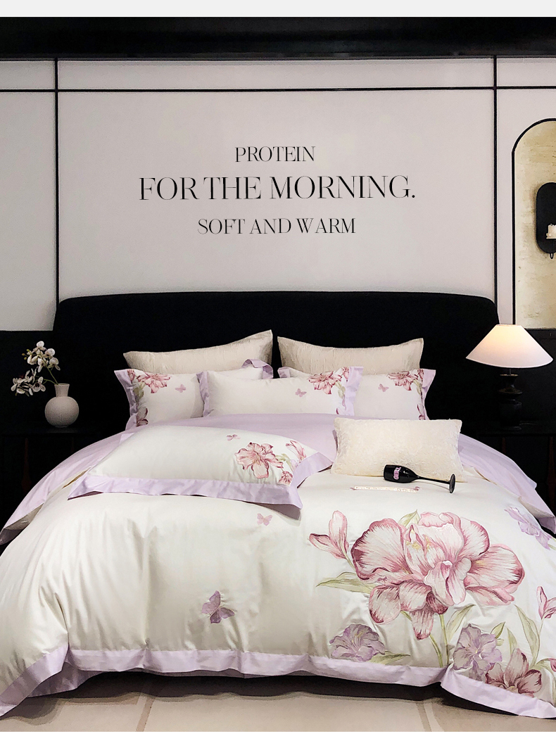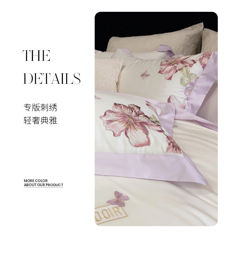 商品名称:2025新款全棉50s绣花刺绣款四件套 雯棠-紫