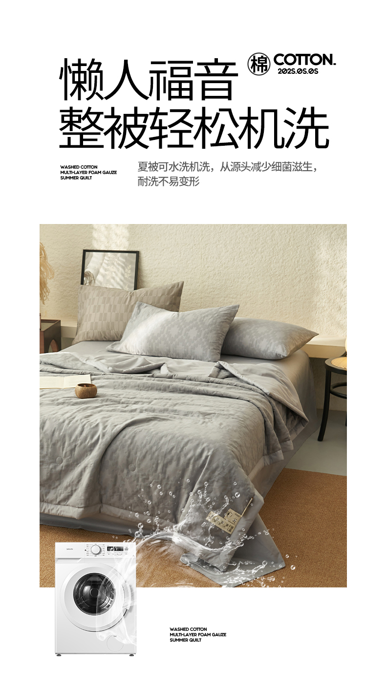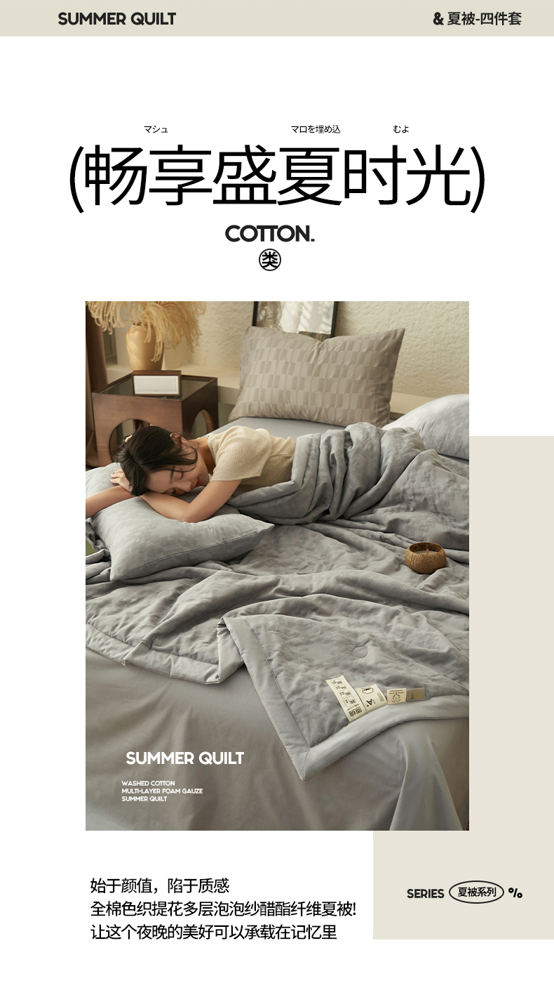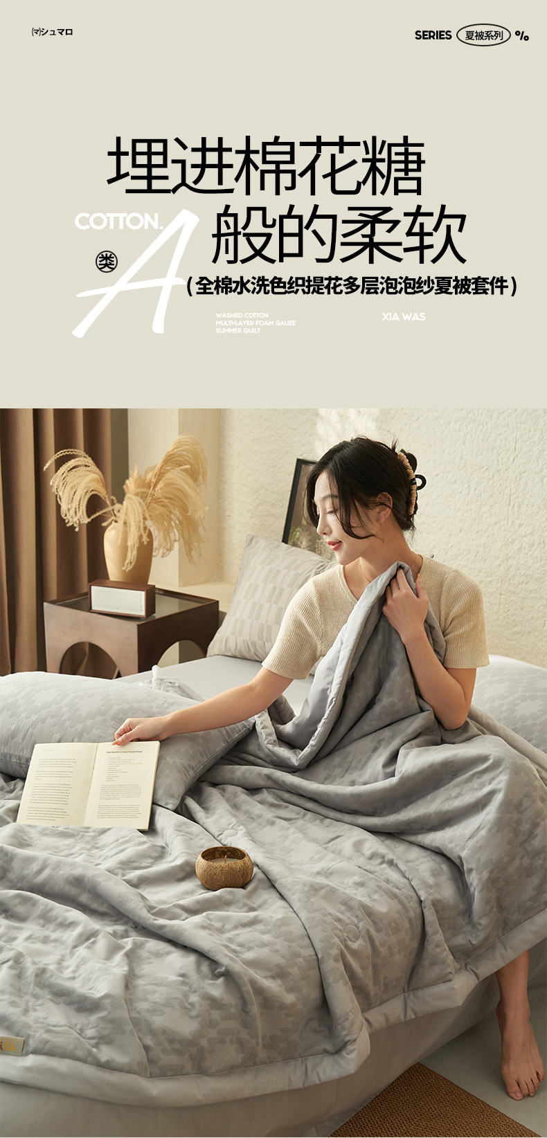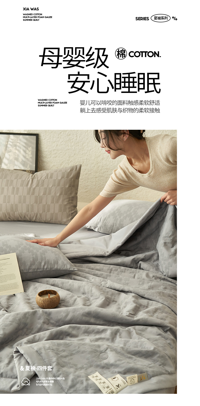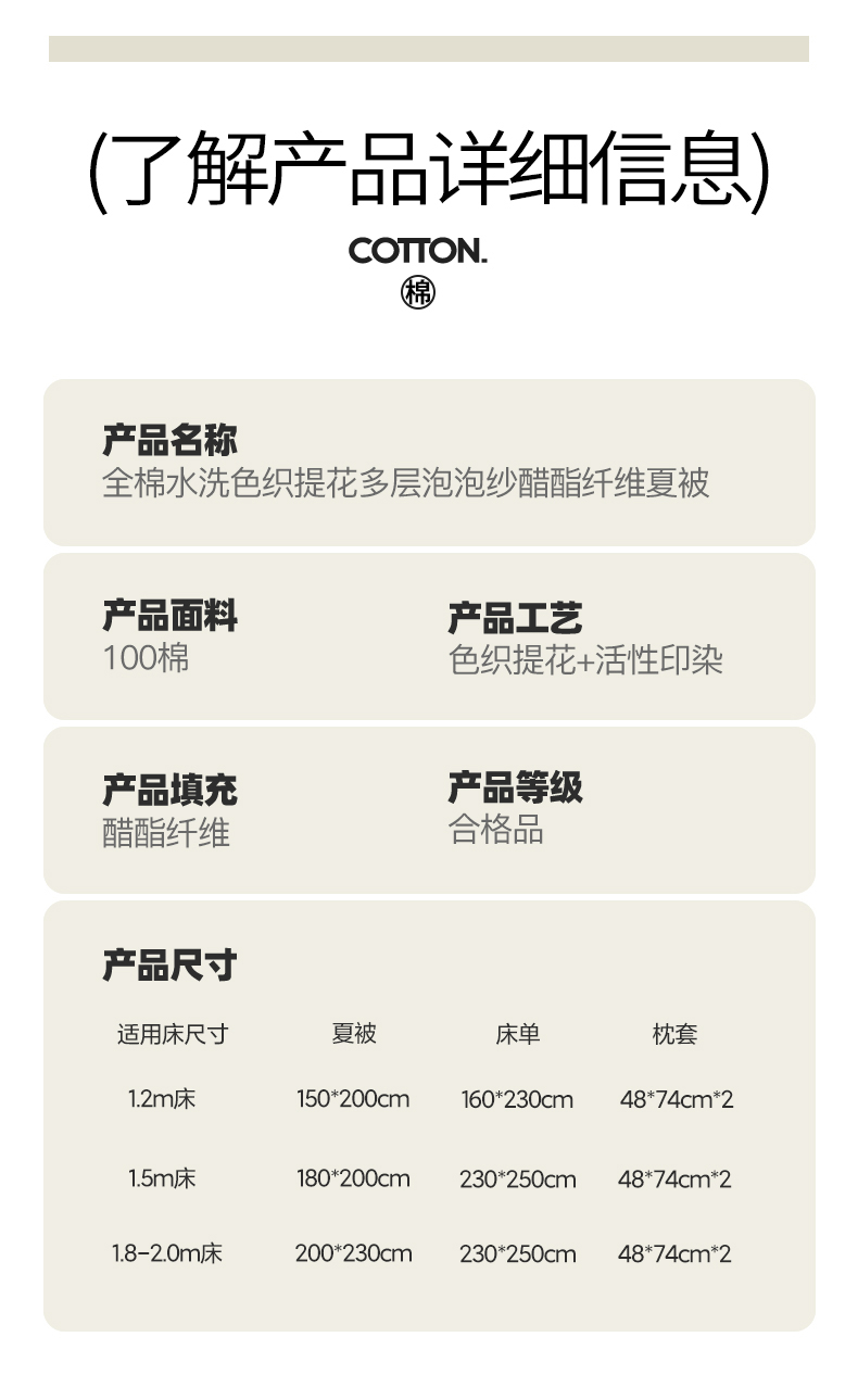 商品名称:(总)一加一 2025新款全棉水洗色织提花多层泡泡纱娜雅醋酯夏被四件套