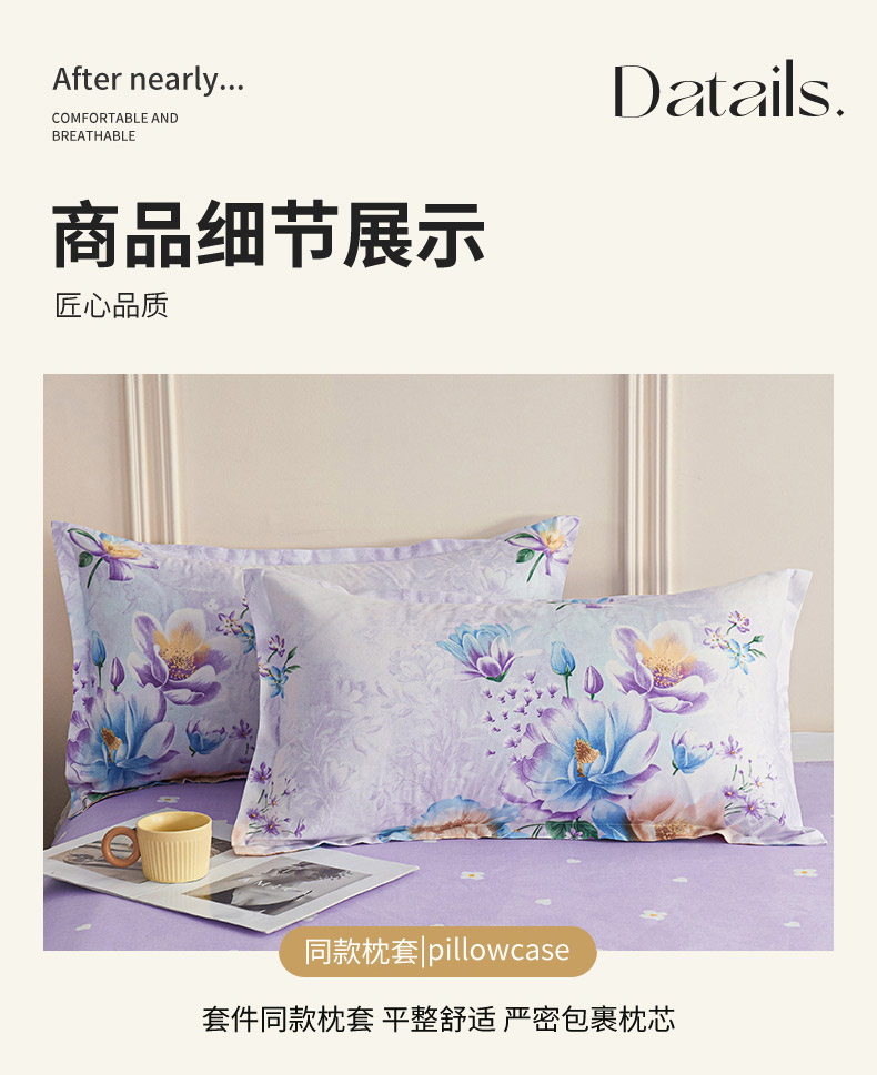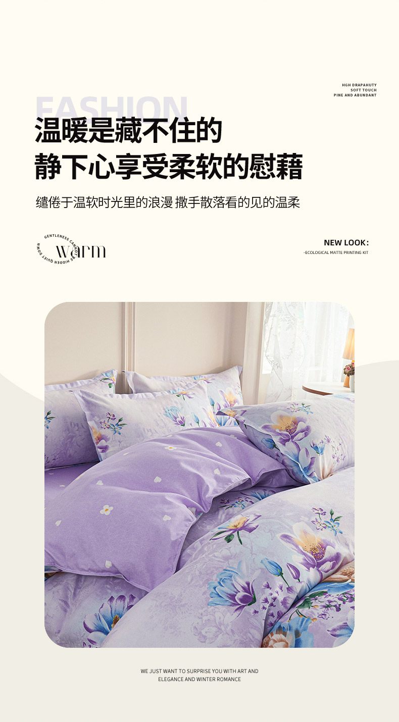 商品名称:爱诗诺2025加厚生态棉磨毛四件套高克重植物羊绒四件套大量现货仲夏花梦
