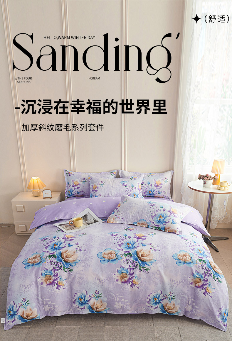 爱诗诺2025加厚生态棉磨毛四件套高克重植物羊绒四件套大量现货仲夏花梦