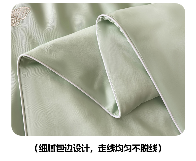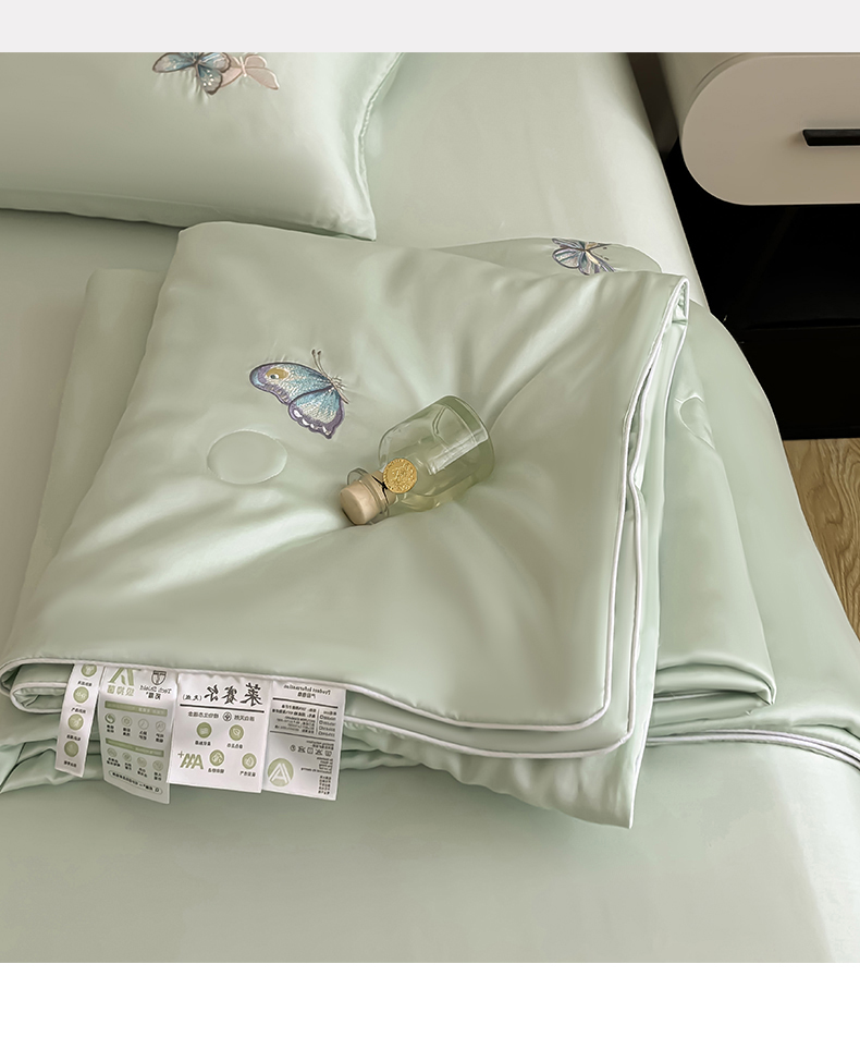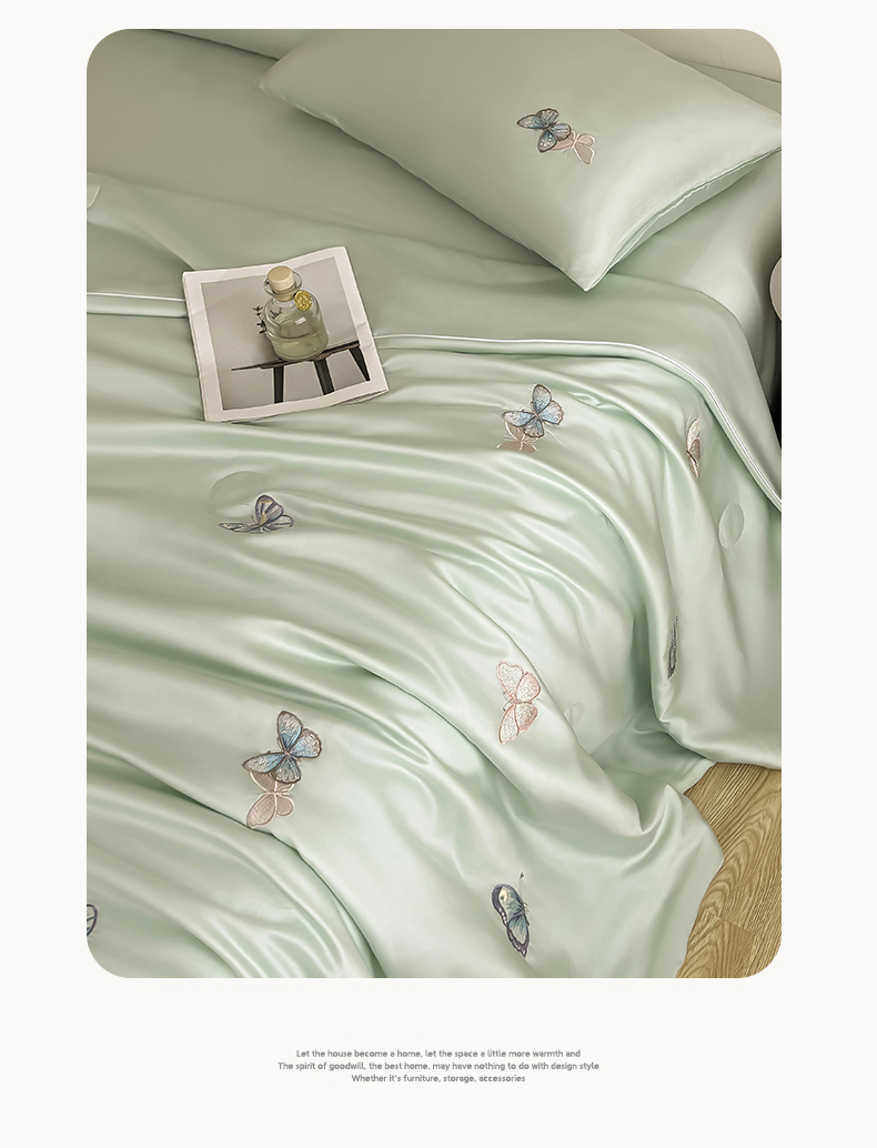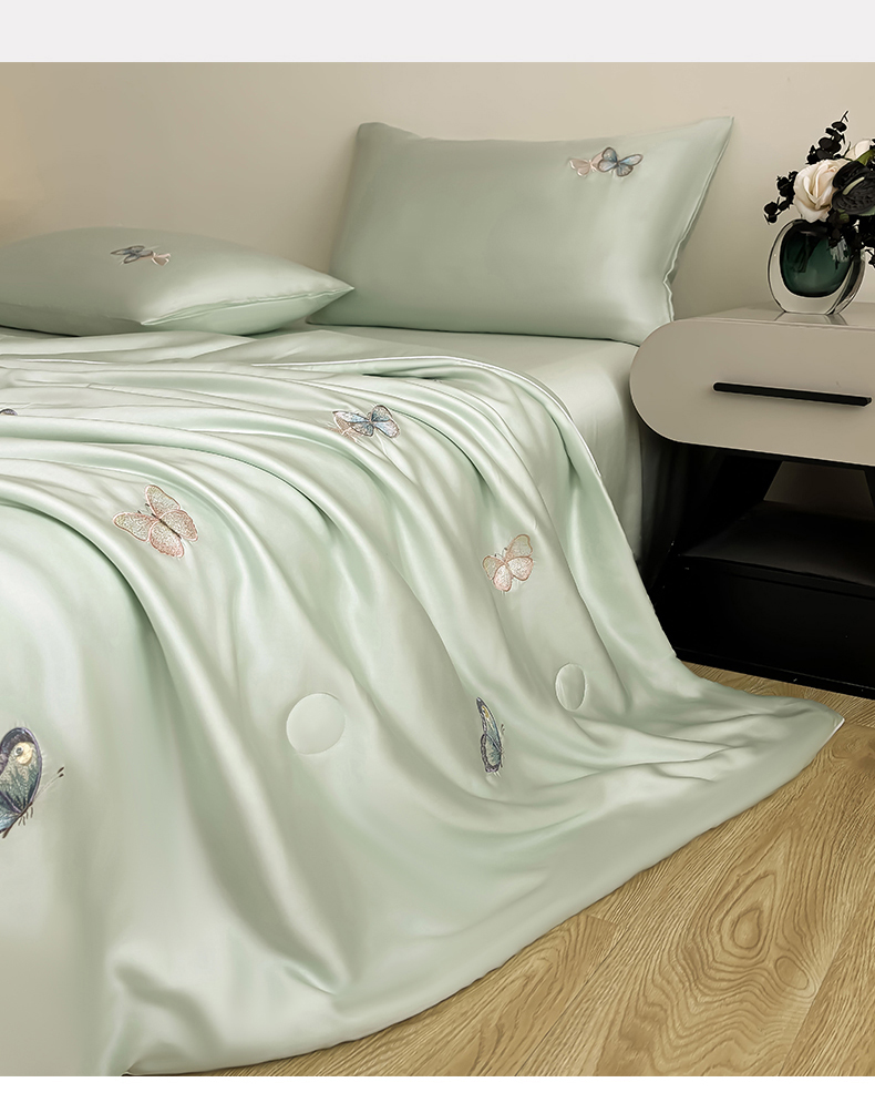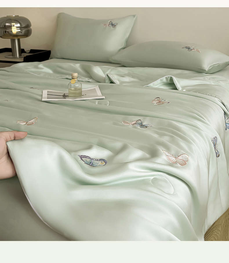 当前位置: 91家纺网 > 商品网购 > 床品套件 > 四件套 > 夏被四件套 > 雯豆家纺 2025夏季新品莱赛尔兰精天丝绣花刺绣夏被空调被四件套冰丝凉感薄被子 蝴蝶系列-抹茶绿