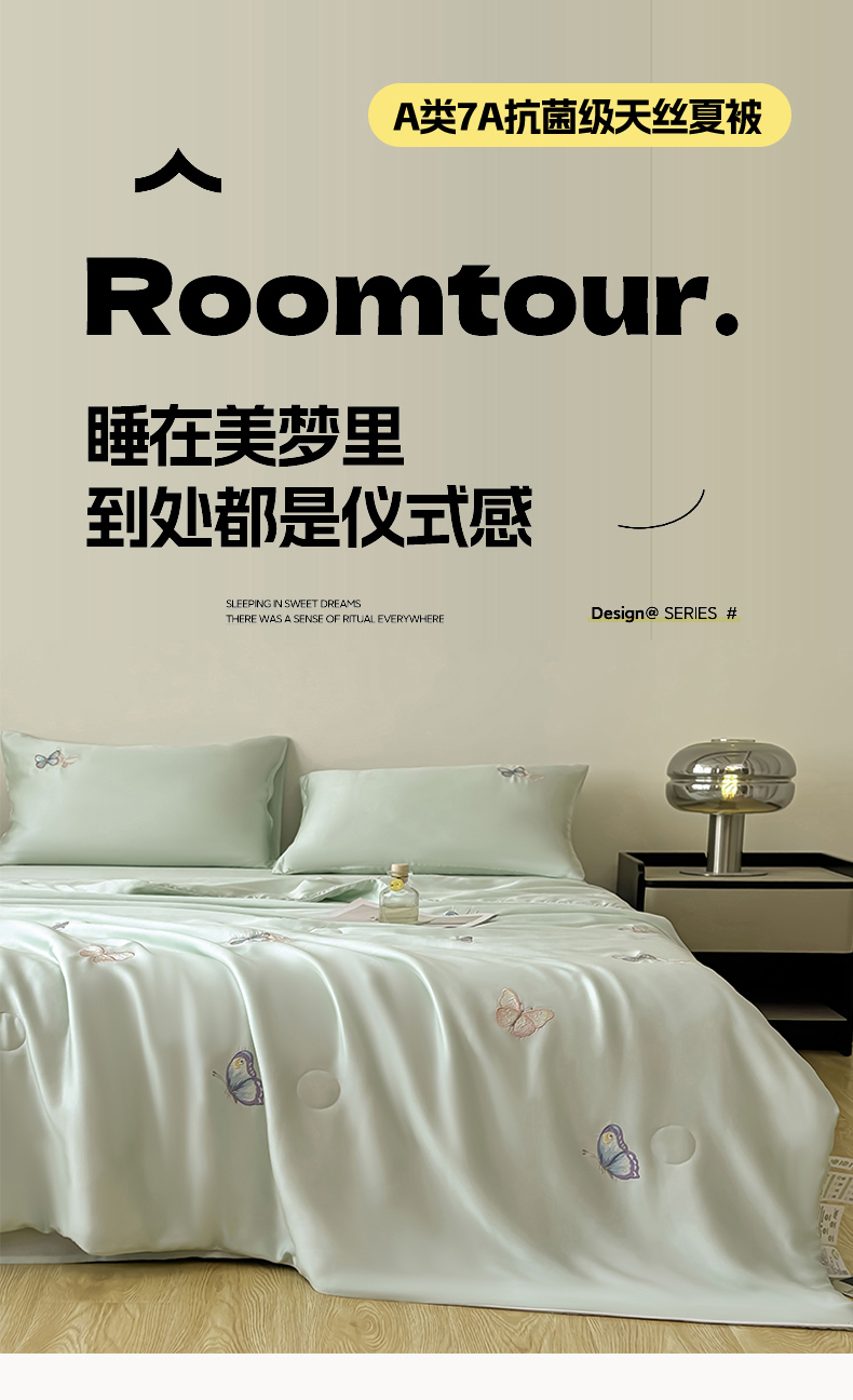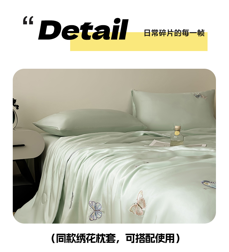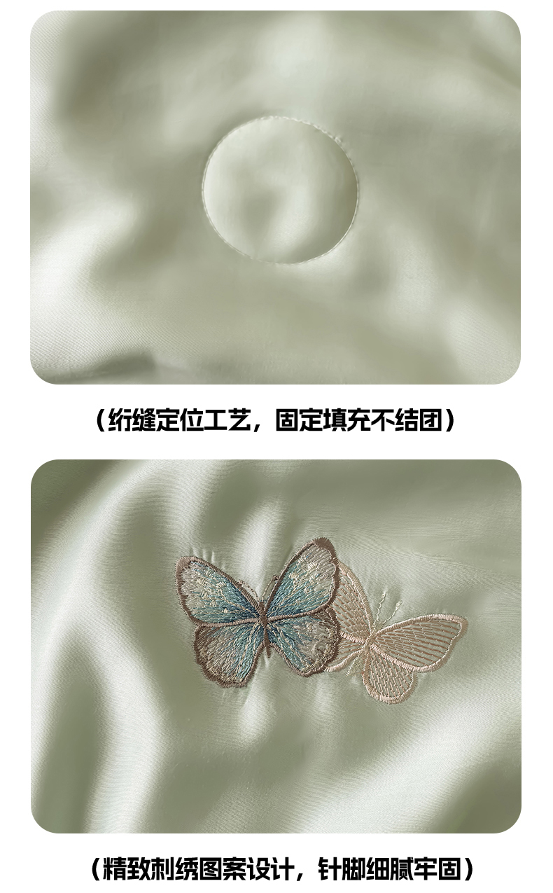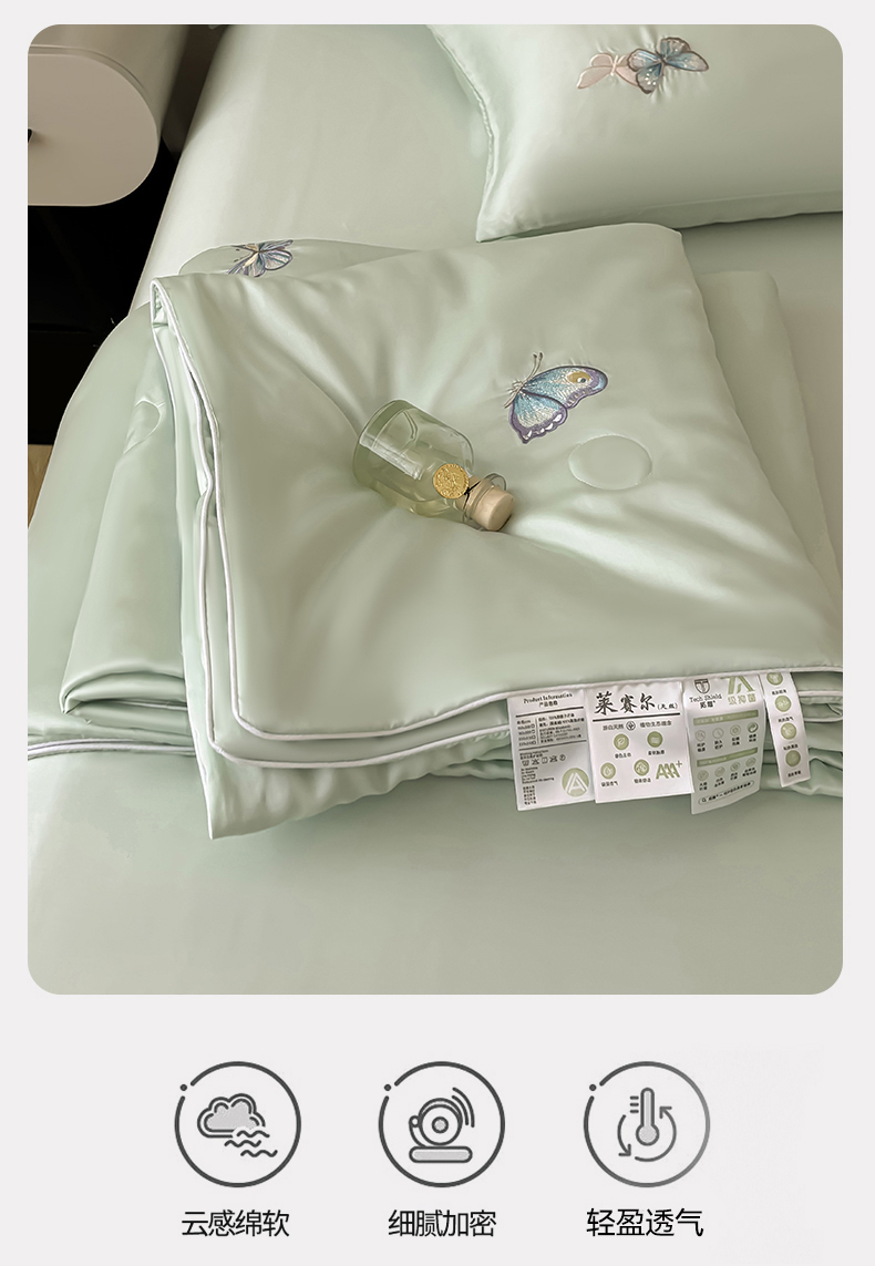 当前位置: 91家纺网 > 商品网购 > 床品套件 > 四件套 > 夏被四件套 > 雯豆家纺 2025夏季新品莱赛尔兰精天丝绣花刺绣夏被空调被四件套冰丝凉感薄被子 蝴蝶系列-抹茶绿
