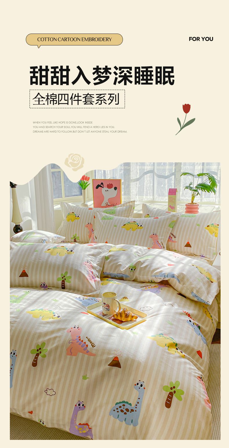 (总)买家秀热款花型不断货 母婴级A类ins风水洗棉四件套水洗棉毛巾绣四件套水洗棉床笠四件套提花绣花四件套,恐龙宝贝,花朵兔兔,面包小狗,奶油小甜甜,奶油芝士,兔伙伴,樱桃兔,优雅