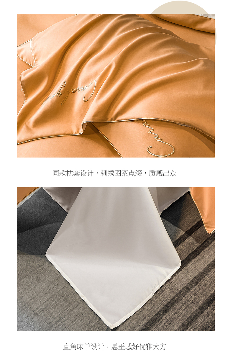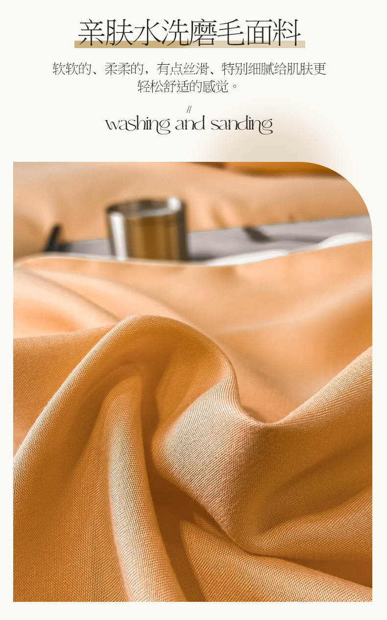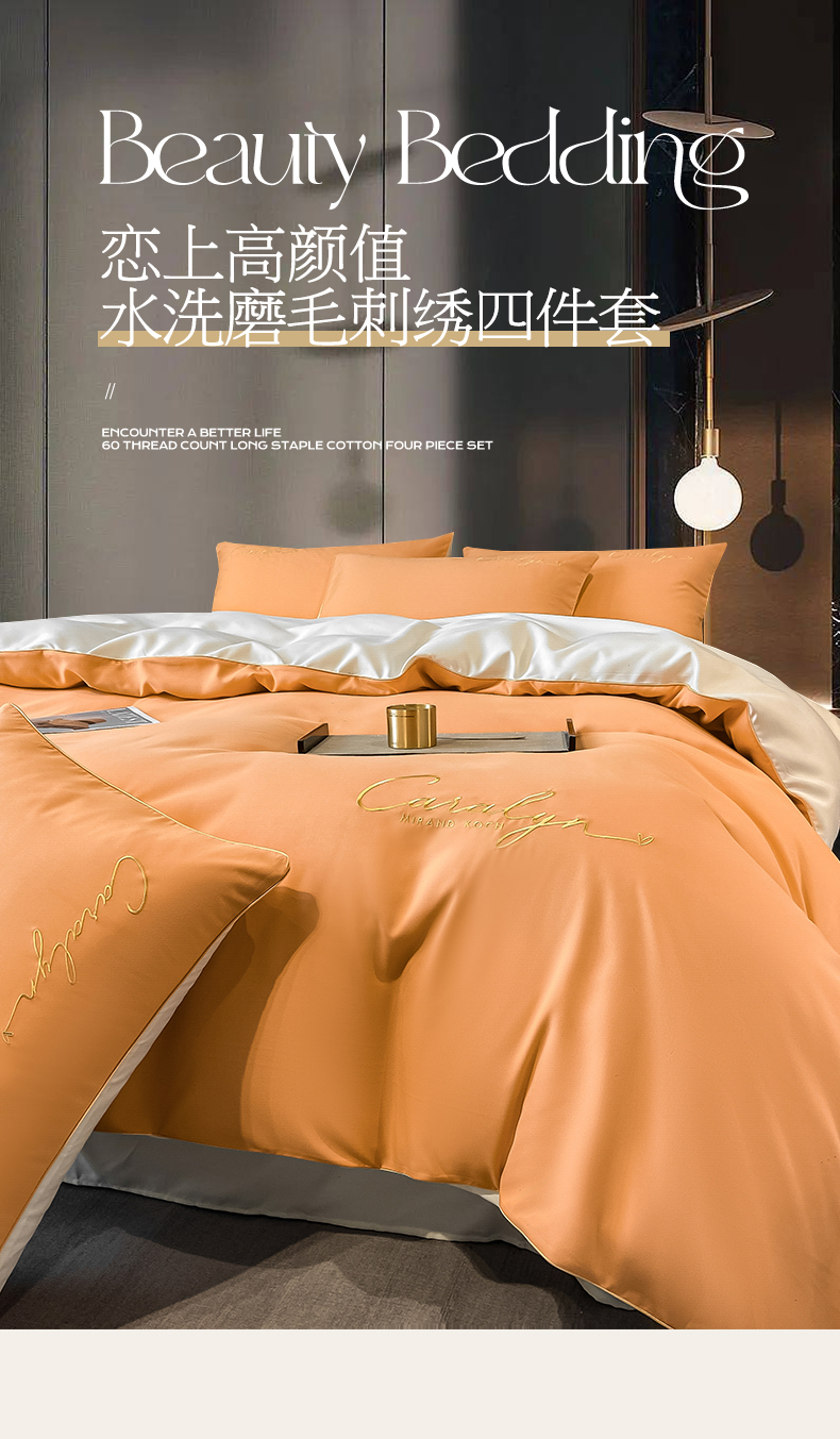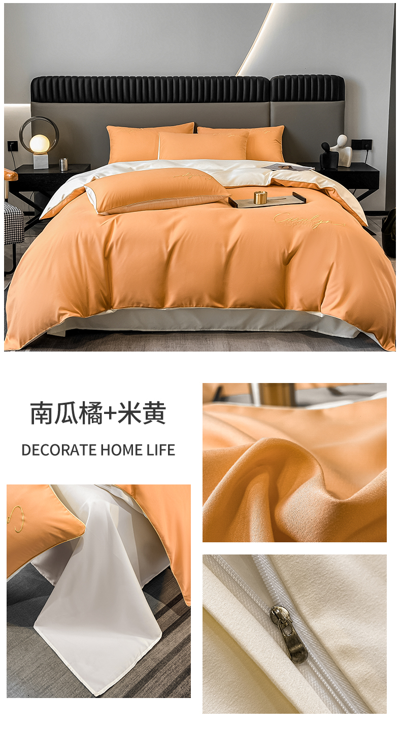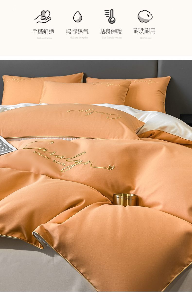 商品名称:2025新款水洗磨毛刺绣四件套-慕斯 南瓜橘+米黄