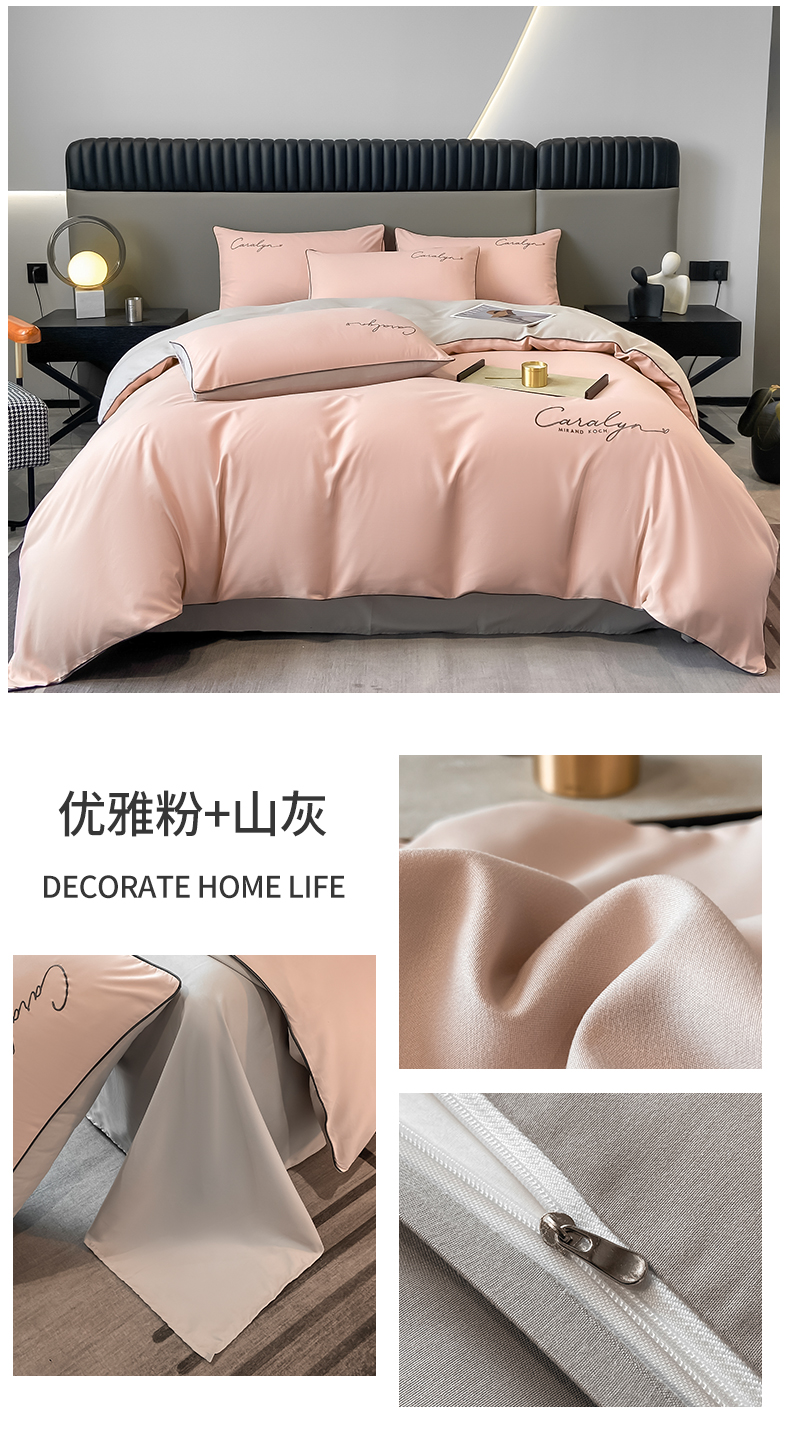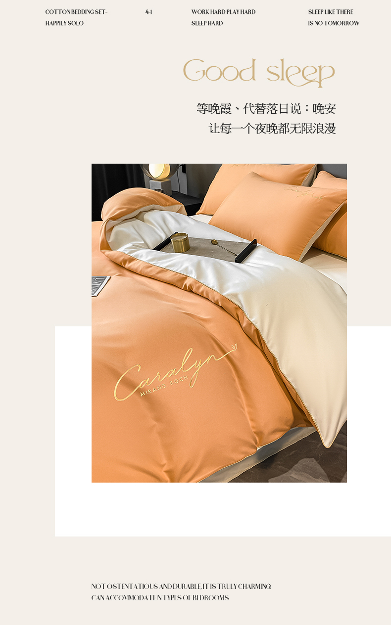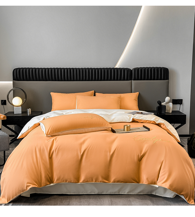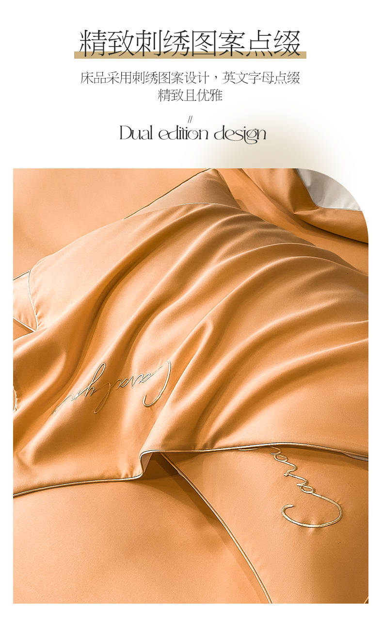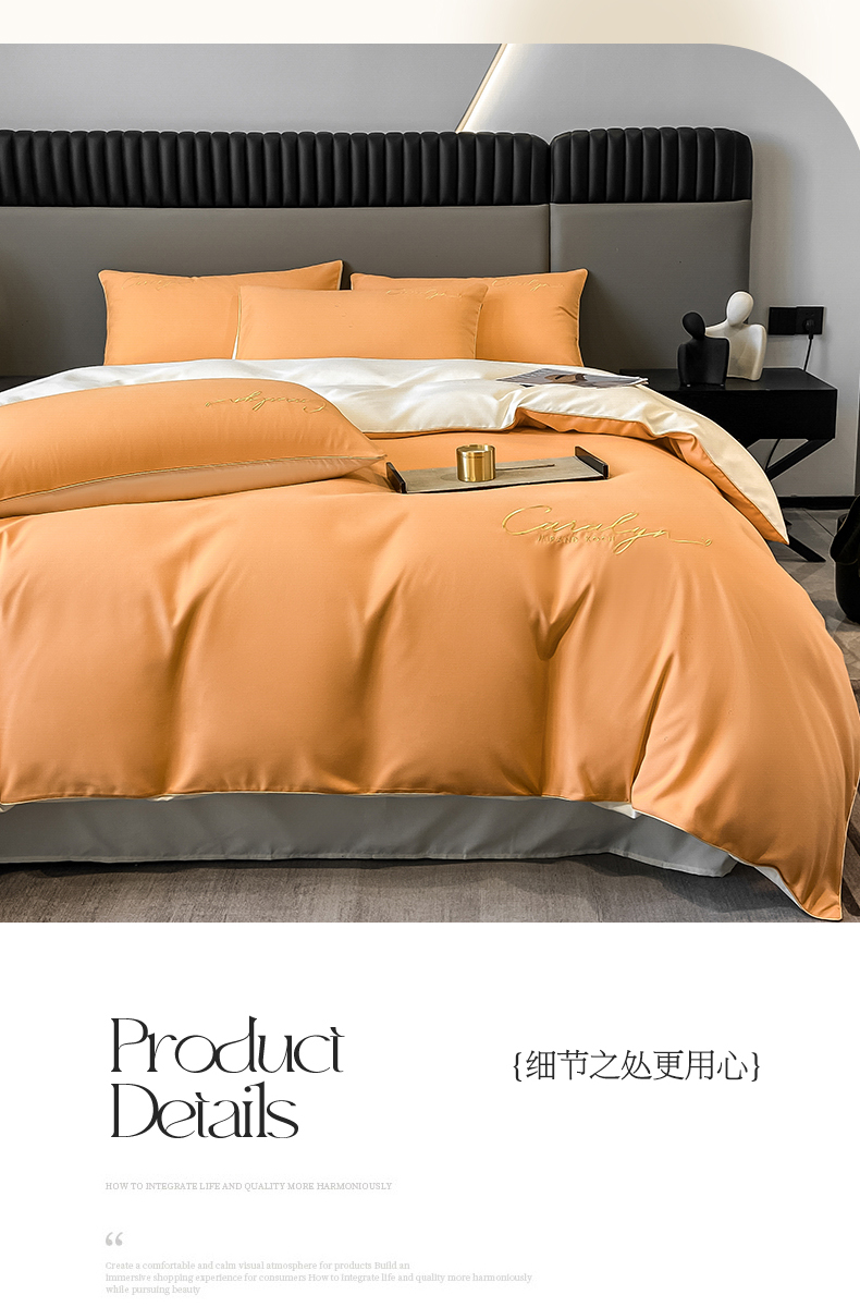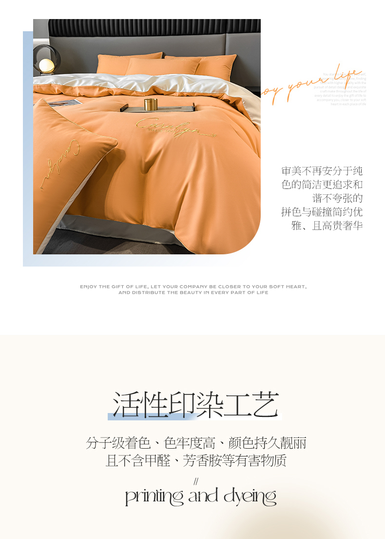 商品名称:2025新款水洗磨毛刺绣四件套-慕斯 南瓜橘+米黄