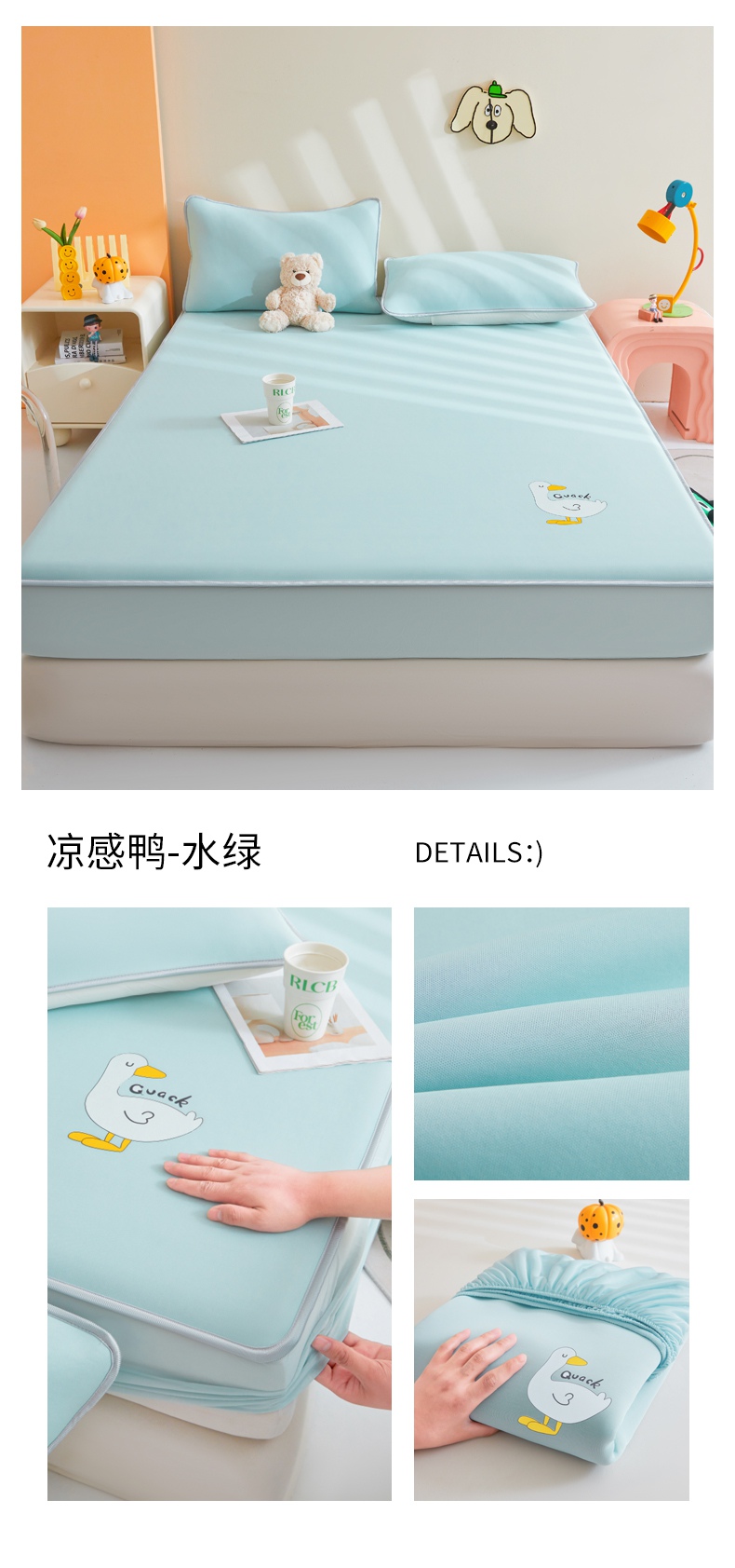 当前位置: 91家纺网 > 商品网购 > 床上用品 > 凉席 > 其他凉席 > 2025春夏新款独家研发太空层凉感鸭冰丝烫画软凉席床笠款 凉感鸭-冰蓝