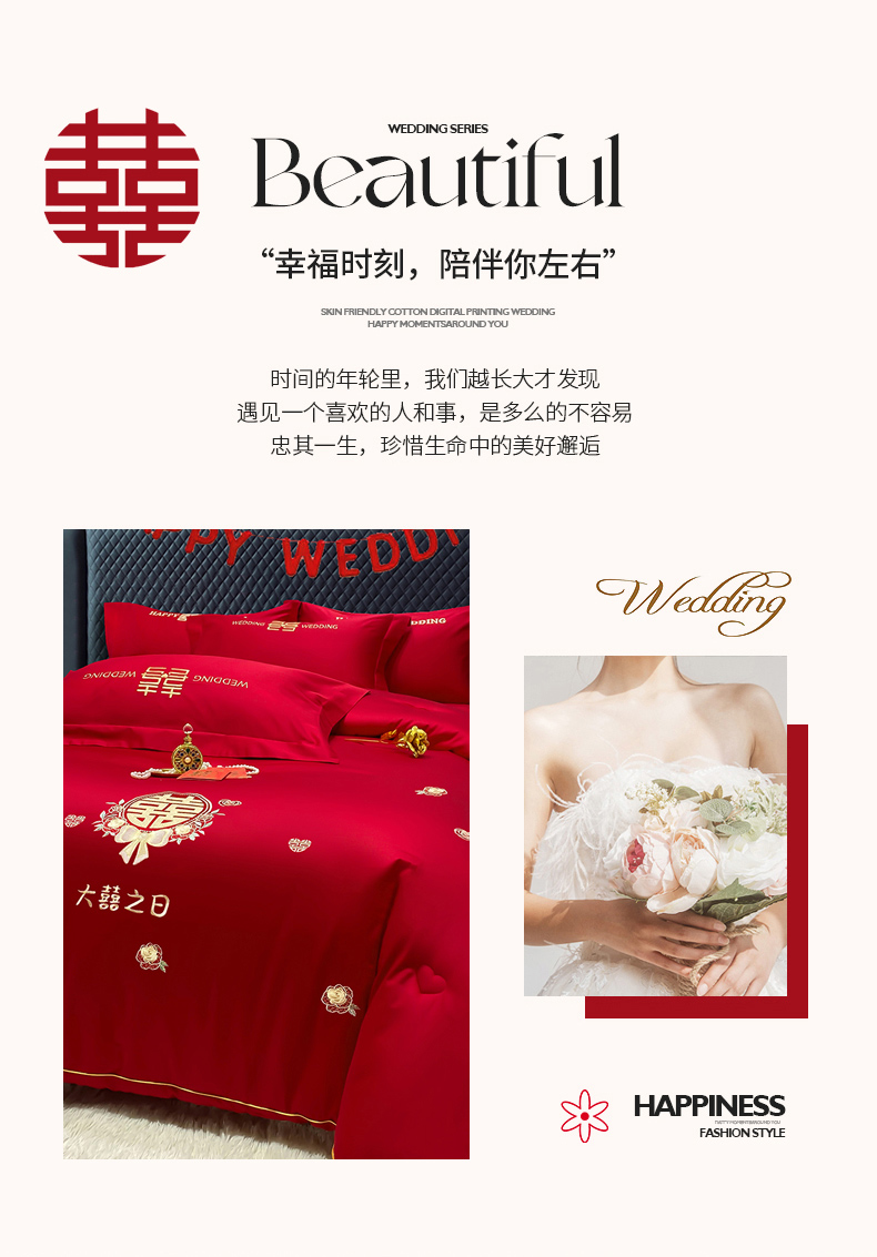 (总)卓缦2025新款亲肤棉韩版婚庆印花花边婚庆四件套,欢颜,千禧