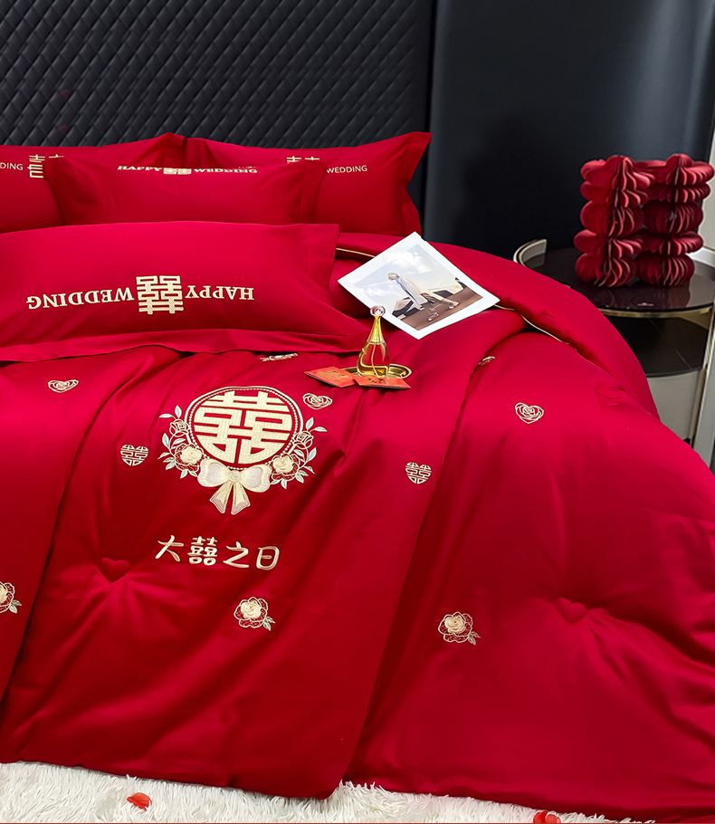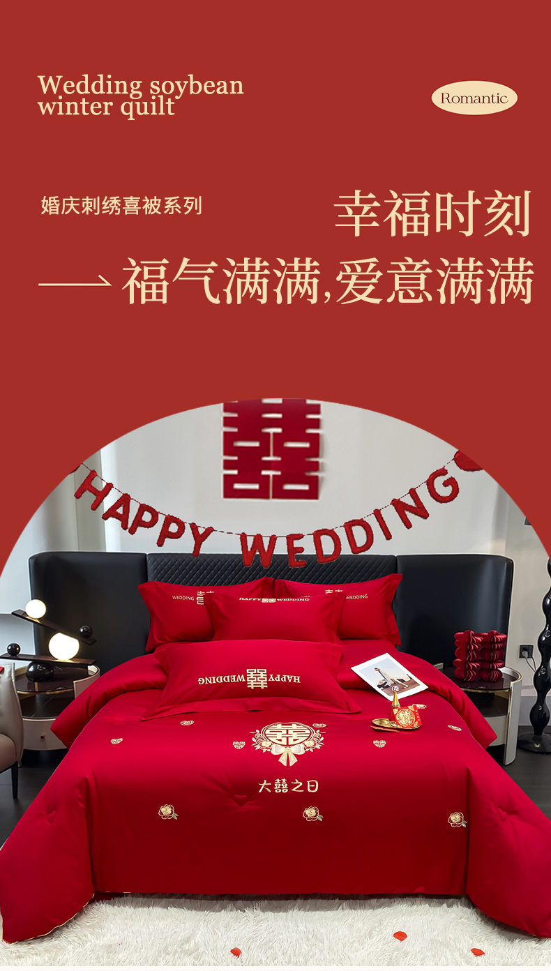(总)2025新款婚庆刺绣整张大豆棉喜被被子被芯,玫瑰之恋,福喜盈门,家有喜事