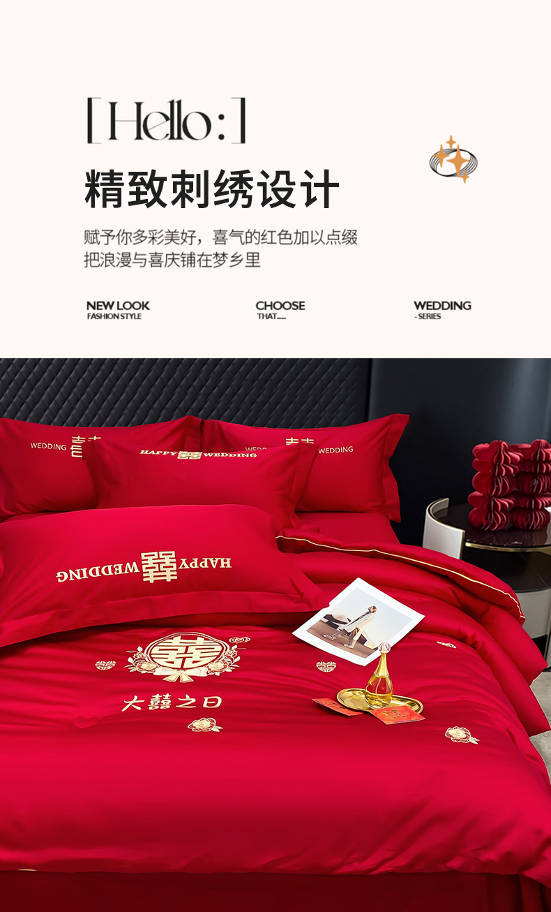 (总)卓缦家纺 2025新款提花刺绣婚庆四件套(控价50+),热情玫瑰,喜悦,永恒