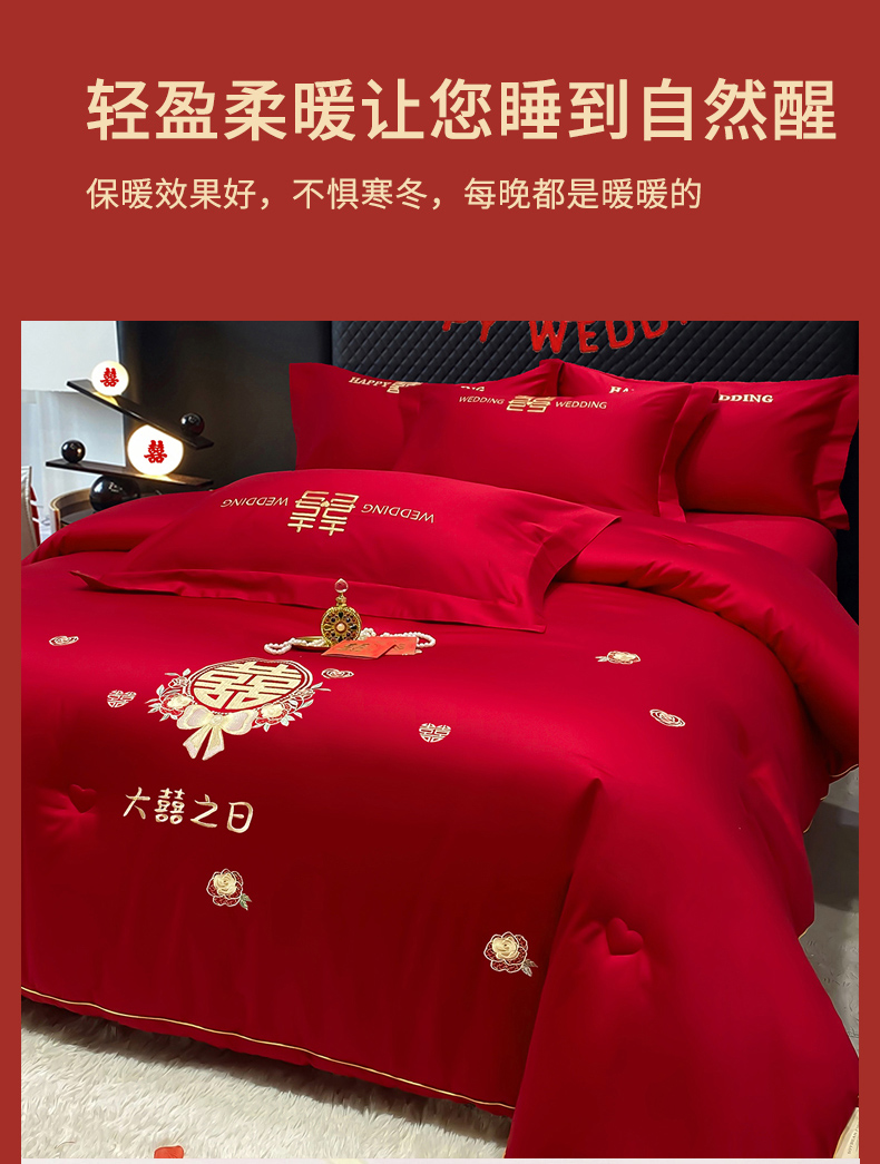商品名称:2025新款婚庆刺绣整张大豆棉喜被被子被芯 玫瑰之恋