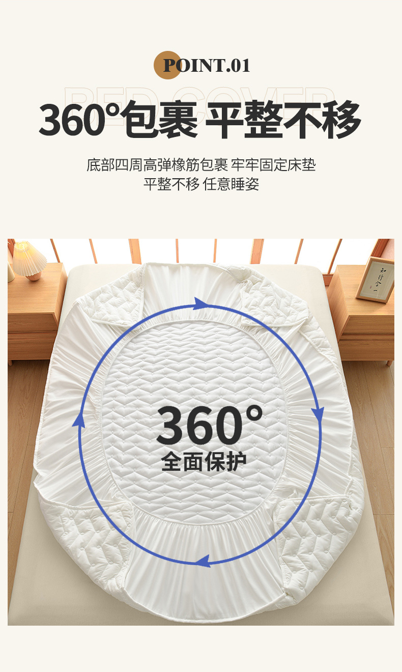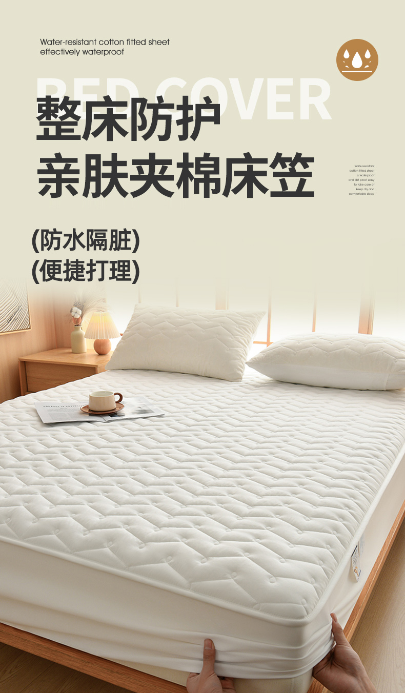 乐逸家纺 2025新款防水波浪夹棉床笠 防水白雪公主