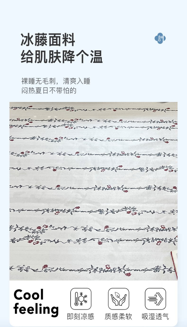 商品名称:(总)绒艺席业 2025新款600D冰丝印花数码印花冰藤席赫本风系列