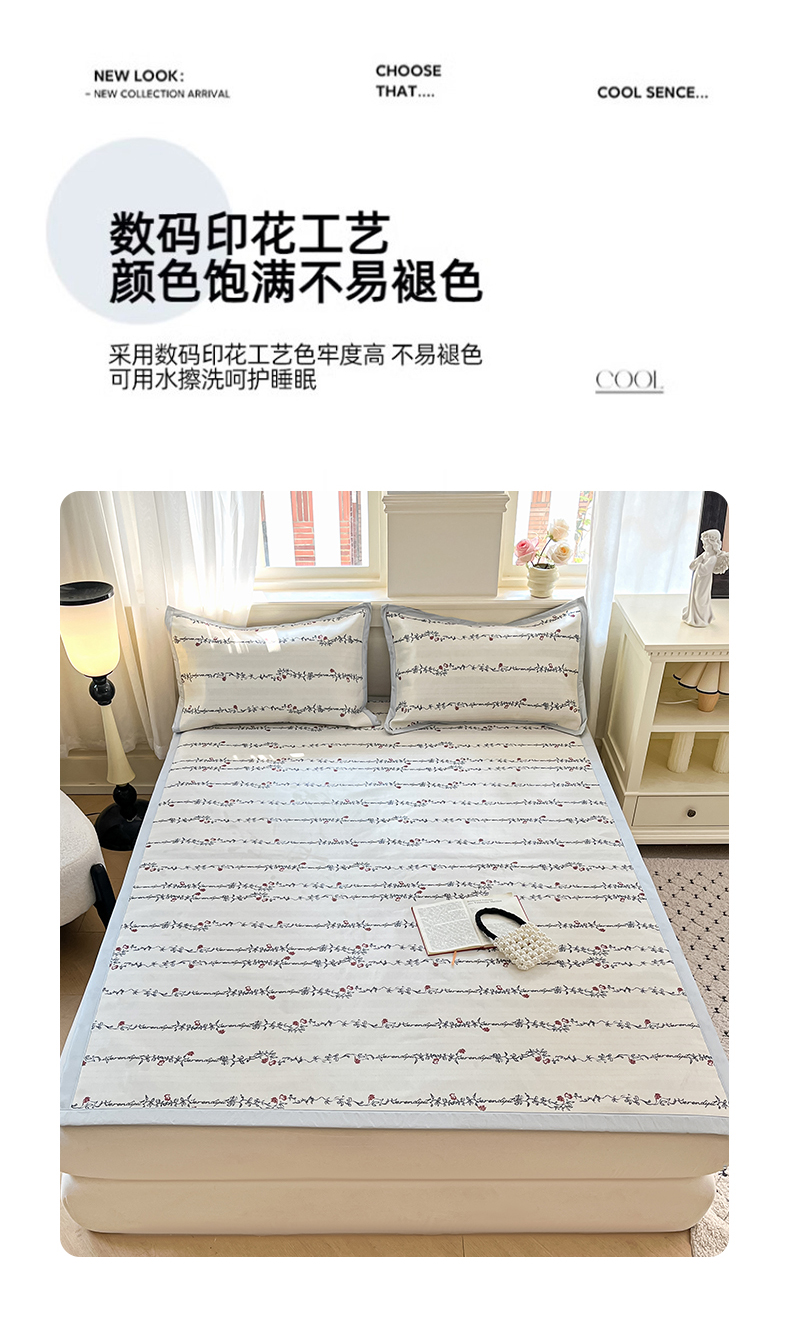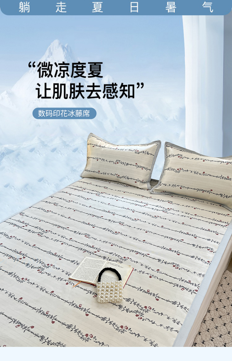 (总)绒艺席业 2025新款600D冰丝印花数码印花冰藤席赫本风系列